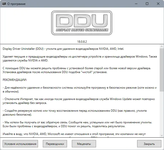 Описание Display Driver Uninstaller