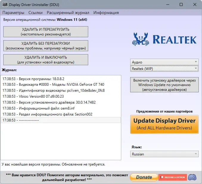 Как пользоваться Display Driver Uninstaller