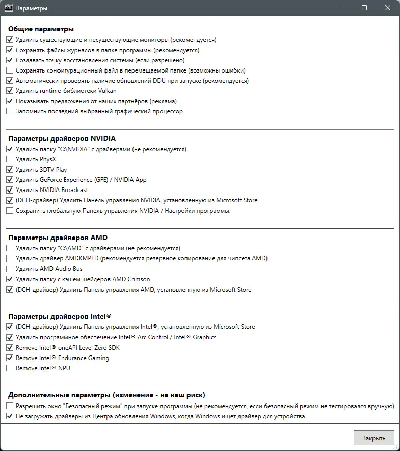 Display Driver Uninstaller — это мощная утилита для полного удаления драйверов видеокарт и звуковых решений из операционной системы Windows. Программа эффективно очищает систему от остатков драйверов AMD, NVIDIA, Intel, а также аудиодрайверов Realtek и Sound Blaster, включая файлы, папки и ключи реестра. После её использования система возвращается в состояние, аналогичное чистой установке, что особенно полезно при смене видеокарты или устранении конфликтов драйверов.