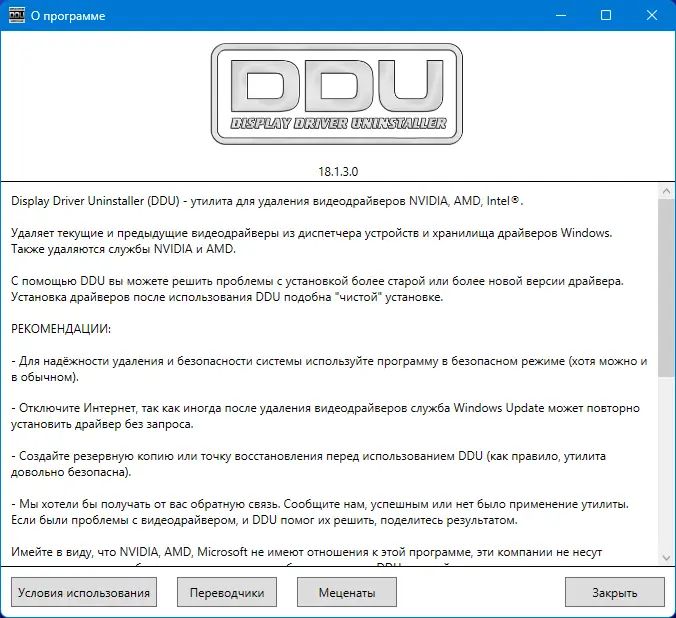 - Требует осторожности: удаление драйверов без последующей установки новых может привести к временной неработоспособности графической подсистемы.