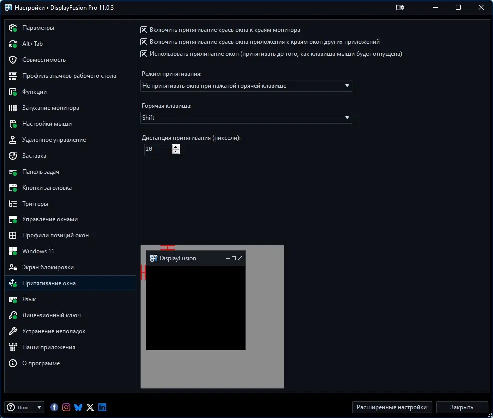 - Гибкое управление окнами с помощью пользовательских горячих клавиш