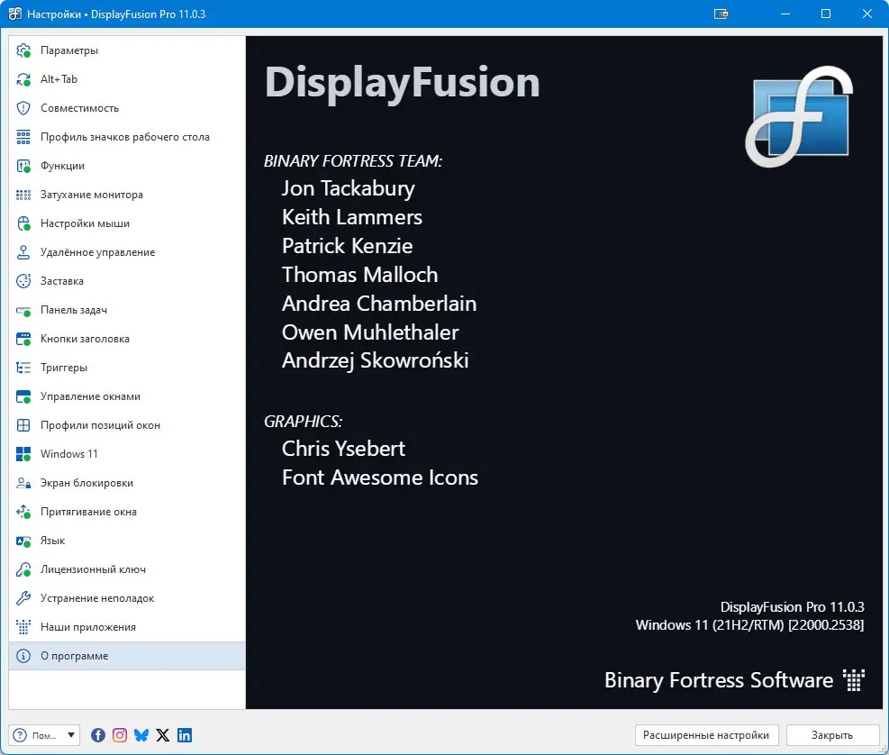 DisplayFusion — это мощное приложение для настройки рабочего стола, особенно полезное пользователям с несколькими мониторами. Программа позволяет устанавливать разные обои на каждый экран, автоматически сменять фон, искать изображения на популярных ресурсах и управлять окнами с помощью горячих клавиш. Благодаря гибким настройкам и расширенным функциям, она значительно повышает удобство работы в многомониторной среде.