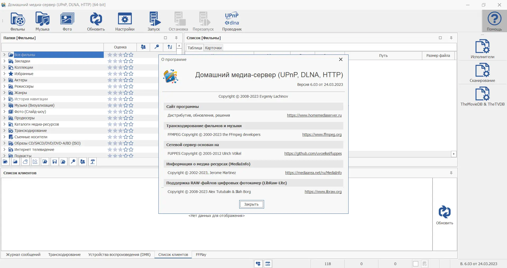Домашний медиа-сервер — это универсальное программное обеспечение для организации и трансляции цифровых медиа-ресурсов в локальной сети. Программа позволяет делиться аудио, видео и фото с различными устройствами, поддерживая протоколы UPnP, DLNA и HTTP. Она совместима с телевизорами, игровыми приставками, мобильными гаджетами и медиаплеерами от ведущих производителей.