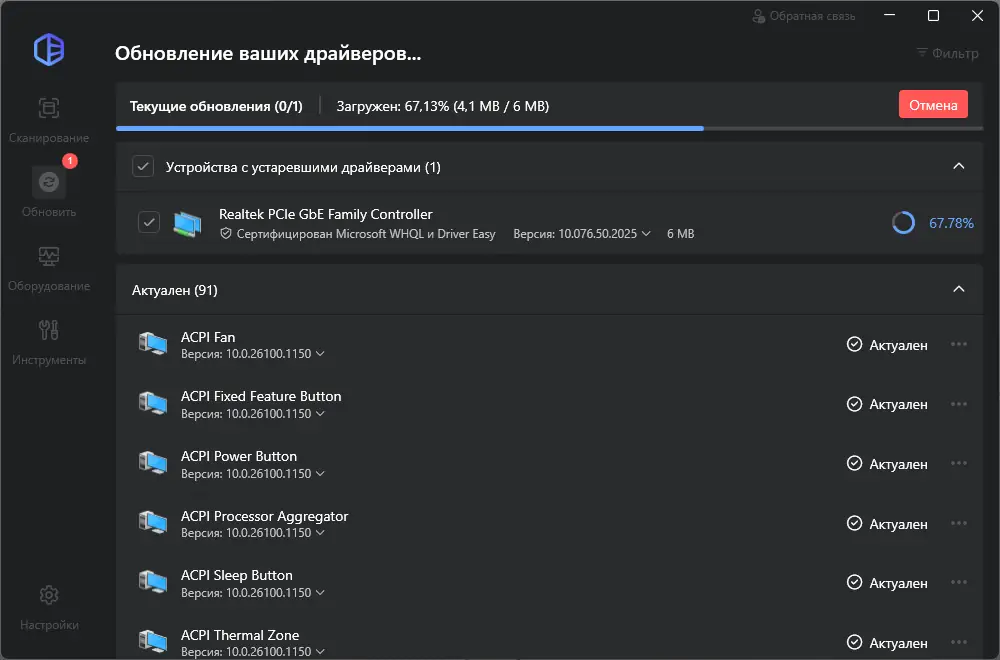 Driver Easy — удобное приложение для автоматического поиска, обновления и управления драйверами в системе. Программа анализирует оборудование, находит устаревшие компоненты и предлагает загрузить актуальные версии, обеспечивая стабильность и производительность компьютера. Она поддерживает широкую базу устройств и предлагает функции резервного копирования, восстановления и удаления драйверов. Работает в операционных системах семейства Windows, включая windows 10 и более новые версии. Подходит как для домашнего, так и для профессионального использования.