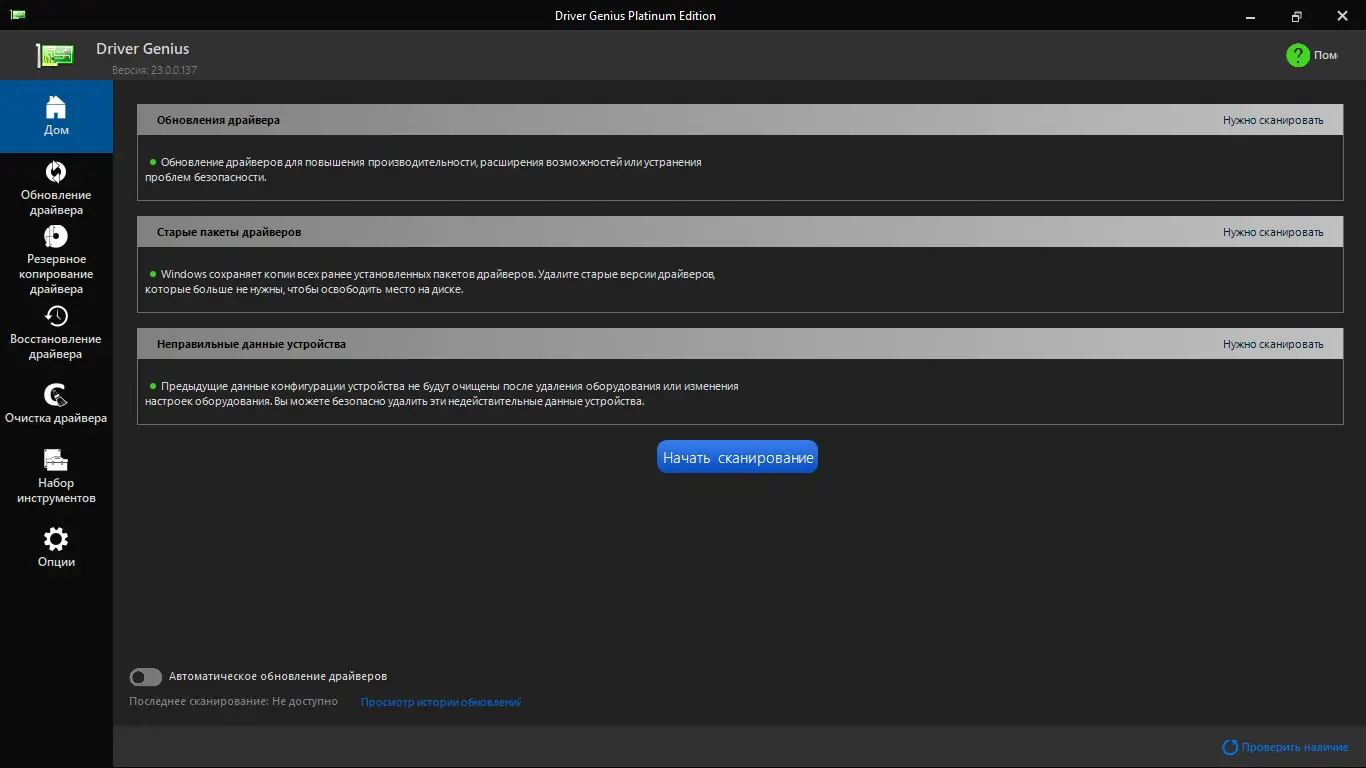 Driver Genius — это комплексное решение для управления драйверами в операционных системах Windows, позволяющее автоматизировать процесс поиска, установки, резервного копирования и восстановления драйверов. Программа поддерживает огромную базу устройств и обеспечивает стабильную работу оборудования за счёт своевременного обновления драйверов и диагностики неисправностей. Благодаря интуитивному интерфейсу и расширенным функциям, она подходит как новичкам, так и опытным пользователям, стремящимся оптимизировать производительность своего компьютера.