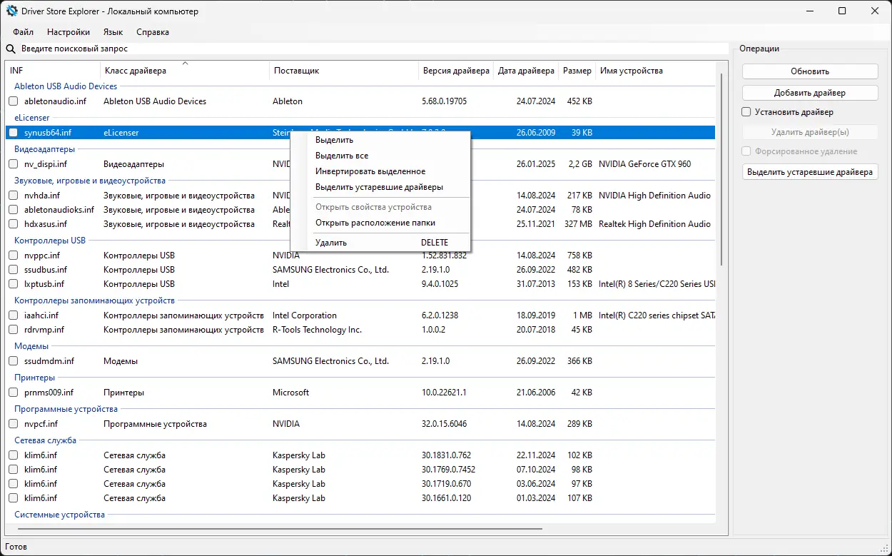 - Поддерживает массовое удаление нескольких драйверов за один раз.