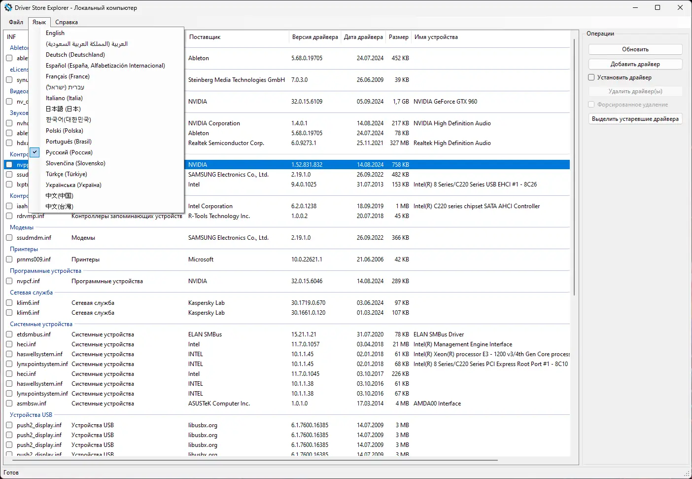 - Поддерживает массовое удаление и принудительное удаление драйверов.