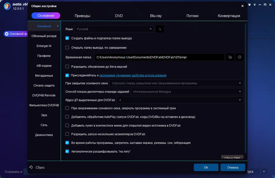 Работа с DVDFab