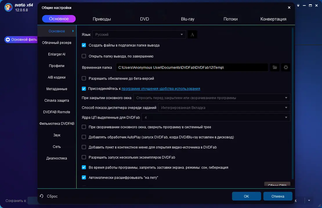 Работа с DVDFab