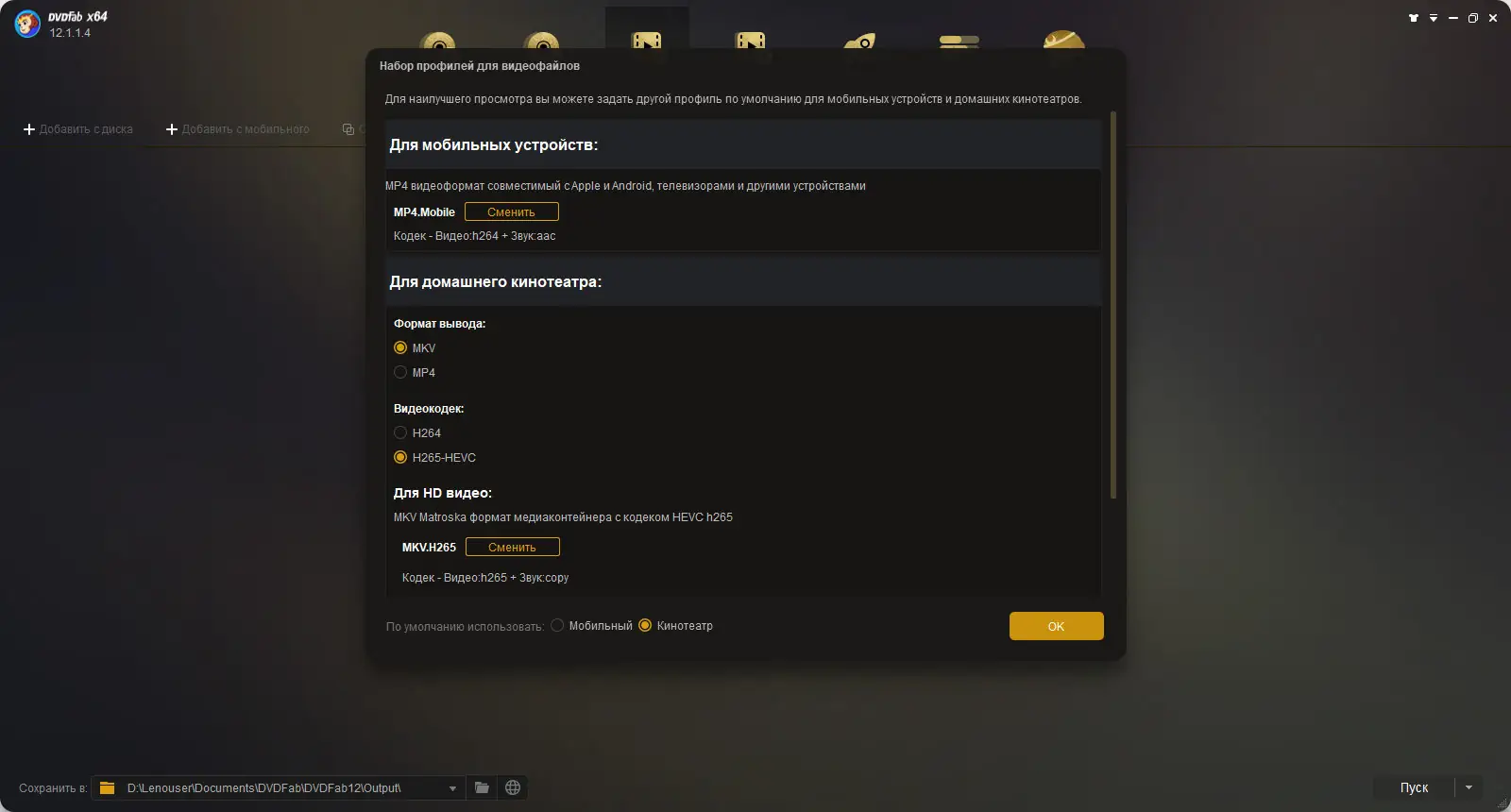 Работа с DVDFab