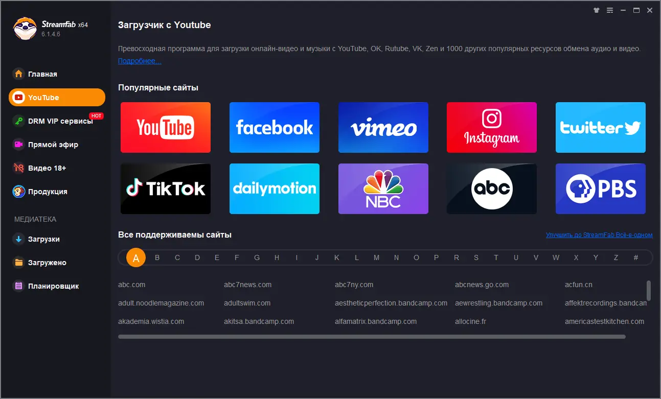 - Поддержка загрузки видео с YouTube, Netflix, Disney+ и других популярных платформ