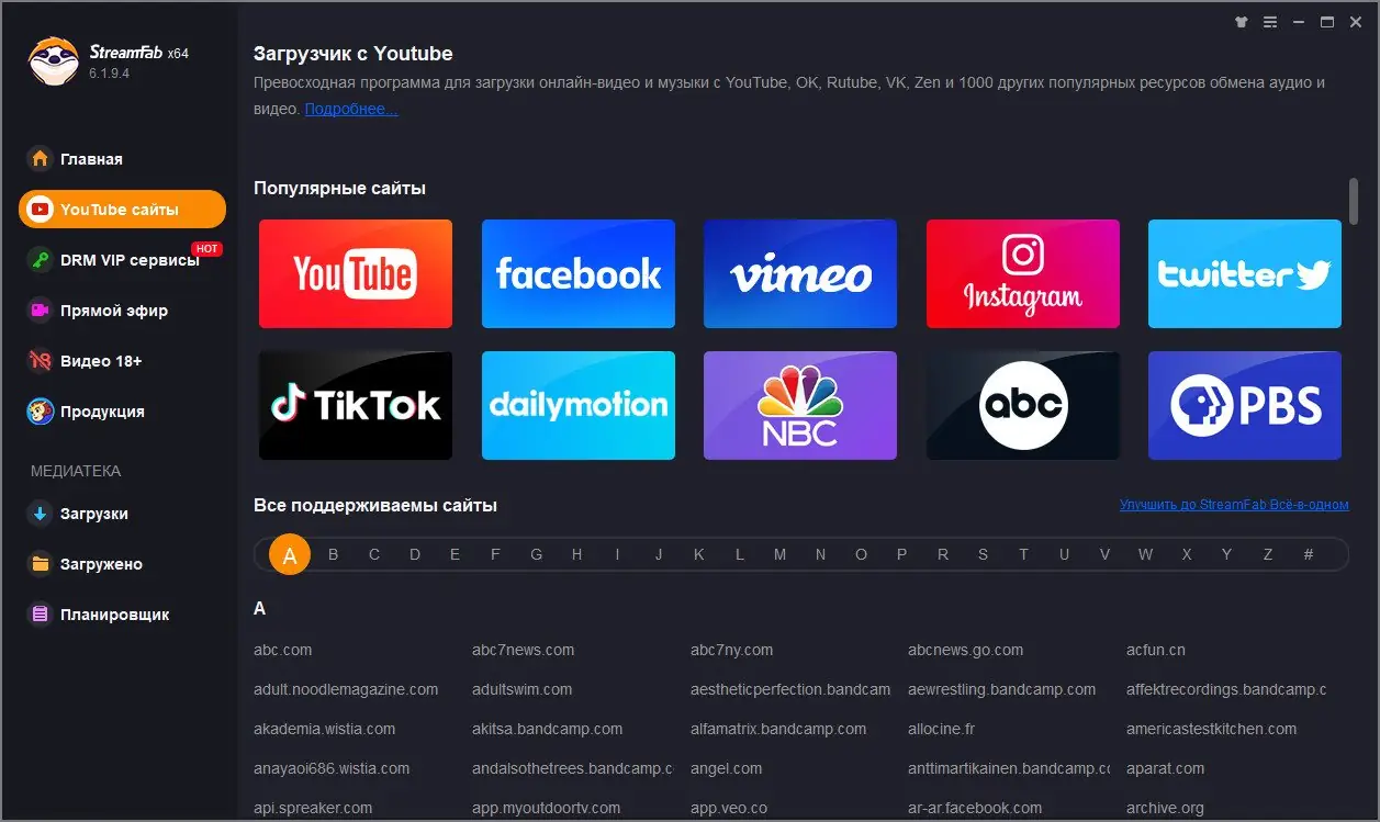 - Поддержка загрузки видео с ведущих онлайн-платформ, включая стриминговые сервисы с защищённым контентом
