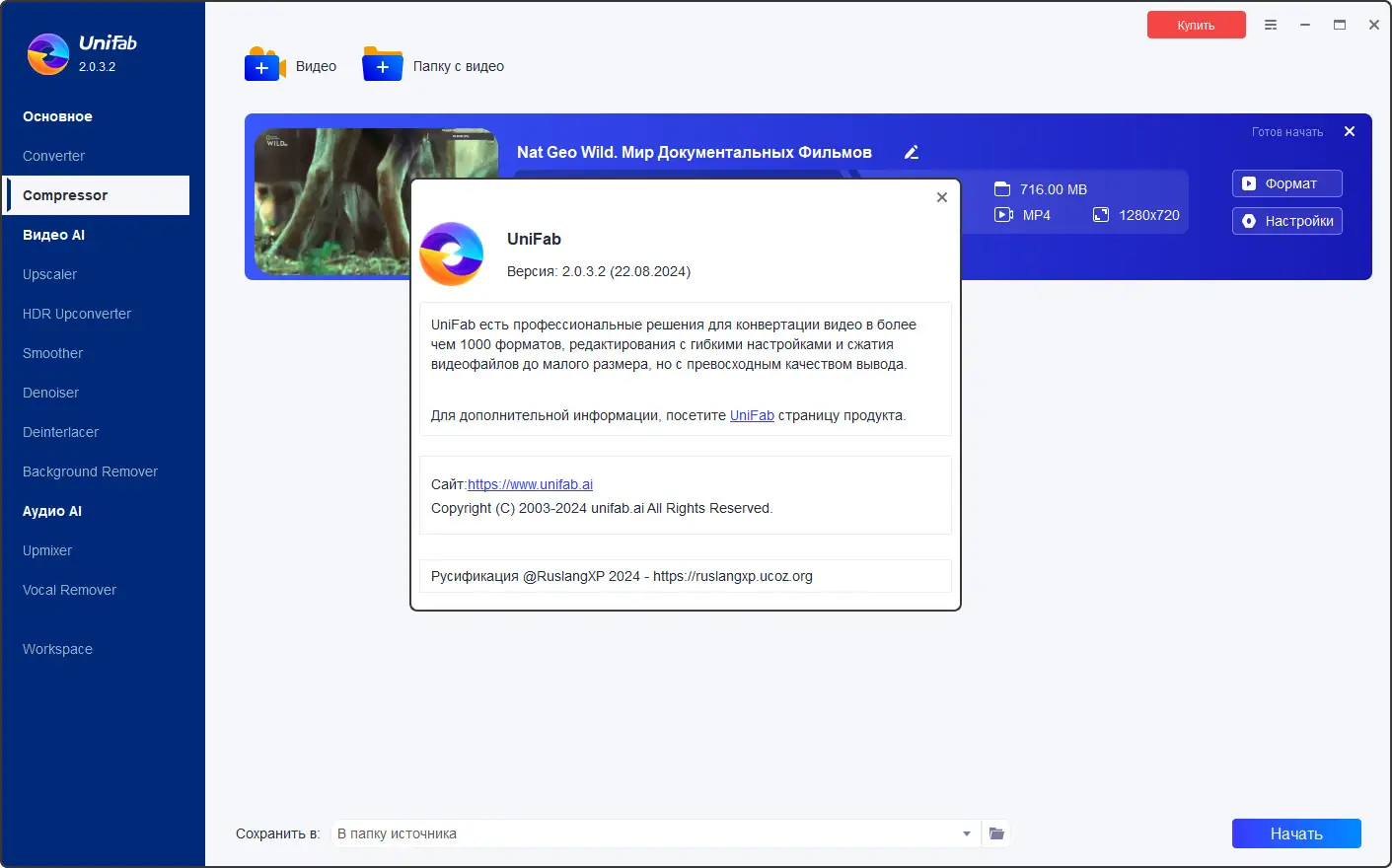 DVDFab UniFab — универсальный медиа-комплекс для конвертации, сжатия и AI-улучшения видео и аудио. Программа поддерживает более 1000 форматов, автоматически повышает качество изображения до HDR10 и Dolby Vision, а звук — до 5.1 и 7.1. Встроенные AI-модули позволяют улучшать детализацию, устранять артефакты и повышать разрешение с минимальными потерями. Утилита включает шесть специализированных модулей и работает в режимах установки или portable.