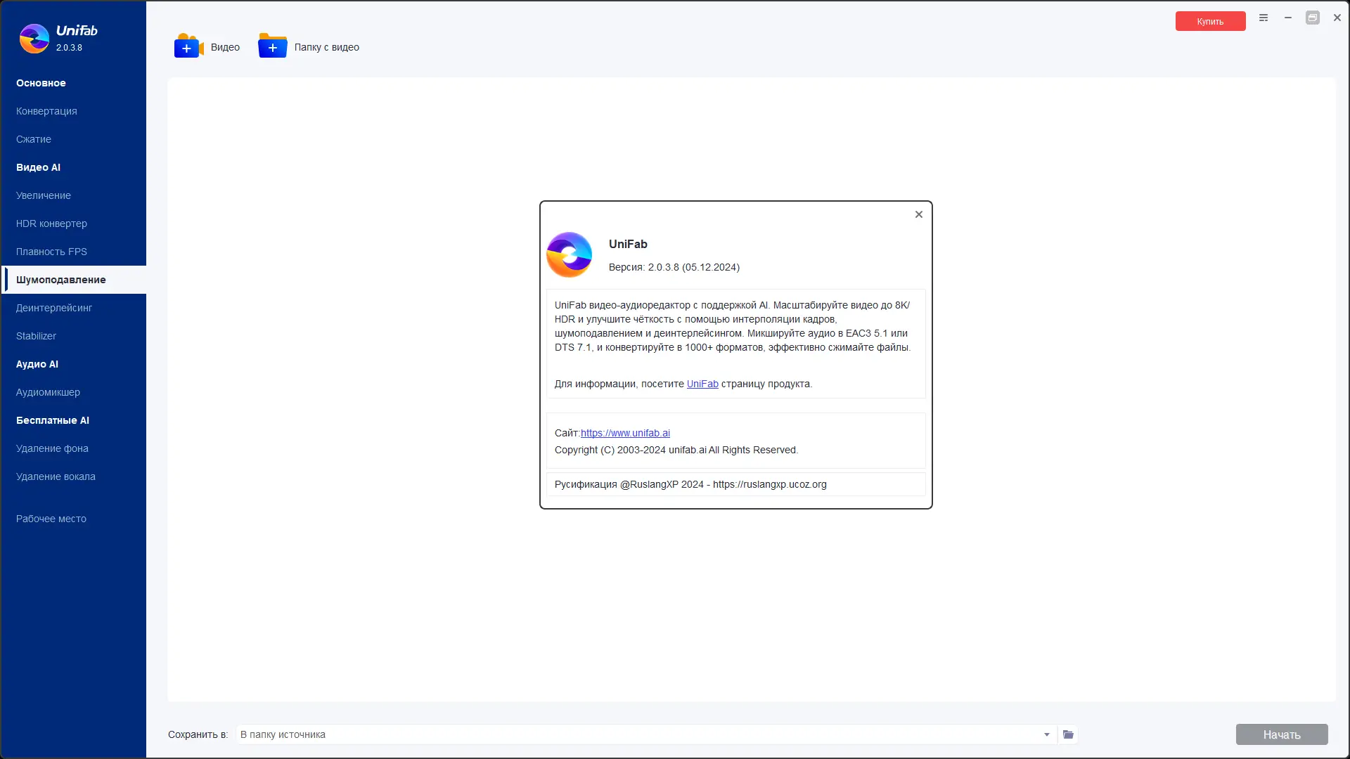DVDFab UniFab представляет собой интегрированное программное решение, объединяющее в себе функции конвертера, аудио- и видеоредактора с продвинутыми AI-технологиями. Разработанная на базе технологий DVDFab, она ориентирована на пользователей, желающих не просто перекодировать файлы, но и значительно улучшить их визуальную и звуковую составляющую. Программа разделена на три основных блока: Основной, Видео AI и Аудио AI, каждый из которых включает специализированные модули для различных задач.
