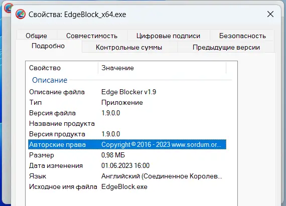 Edge Blocker — это компактная портативная утилита, позволяющая полностью блокировать запуск браузера Microsoft Edge в системе Windows. Программа не требует установки и работает сразу после запуска, обеспечивая простой способ отключить нежелательный браузер без вмешательства в реестр или системные файлы. Подходит для пользователей, желающих использовать альтернативные браузеры и избавиться от автоматического открытия Edge при работе с PDF или ссылками.