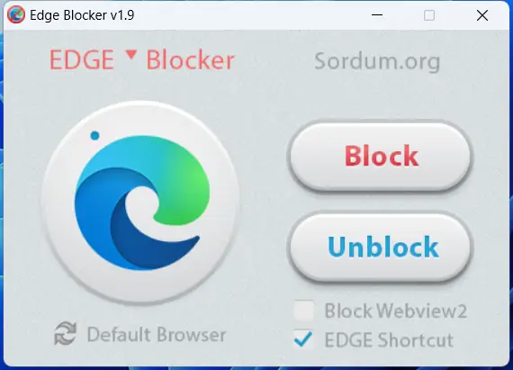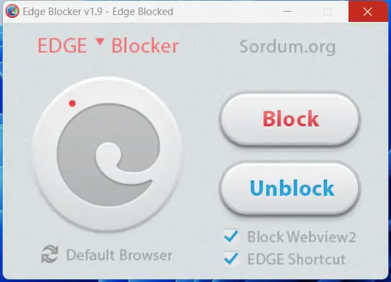 Интерфейс утилиты минималистичен и интуитивно понятен. После запуска пользователь видит две кнопки — «Заблокировать» и «Разблокировать». Нажатие на соответствующую кнопку меняет состояние доступа к Microsoft Edge. При использовании учетной записи с правами администратора блокировка применяется ко всем пользователям системы. В случае стандартной учетной записи ограничение действует только в рамках текущего профиля. Также в обновлённой версии добавлена опция блокировки webview2, что предотвращает использование компонентов Edge другими приложениями. Рекомендуется заранее установить другой браузер по умолчанию, чтобы избежать проблем с открытием ссылок и документов.