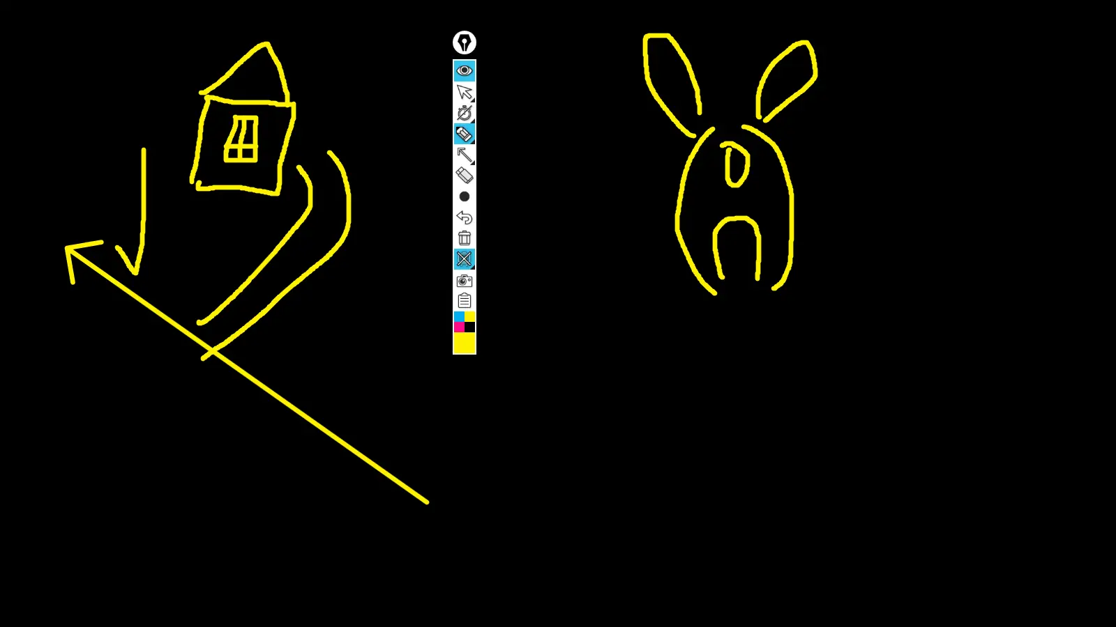 - Программа работает как утилита для рисования на экране, позволяя использовать карандаш, маркер и ластик.