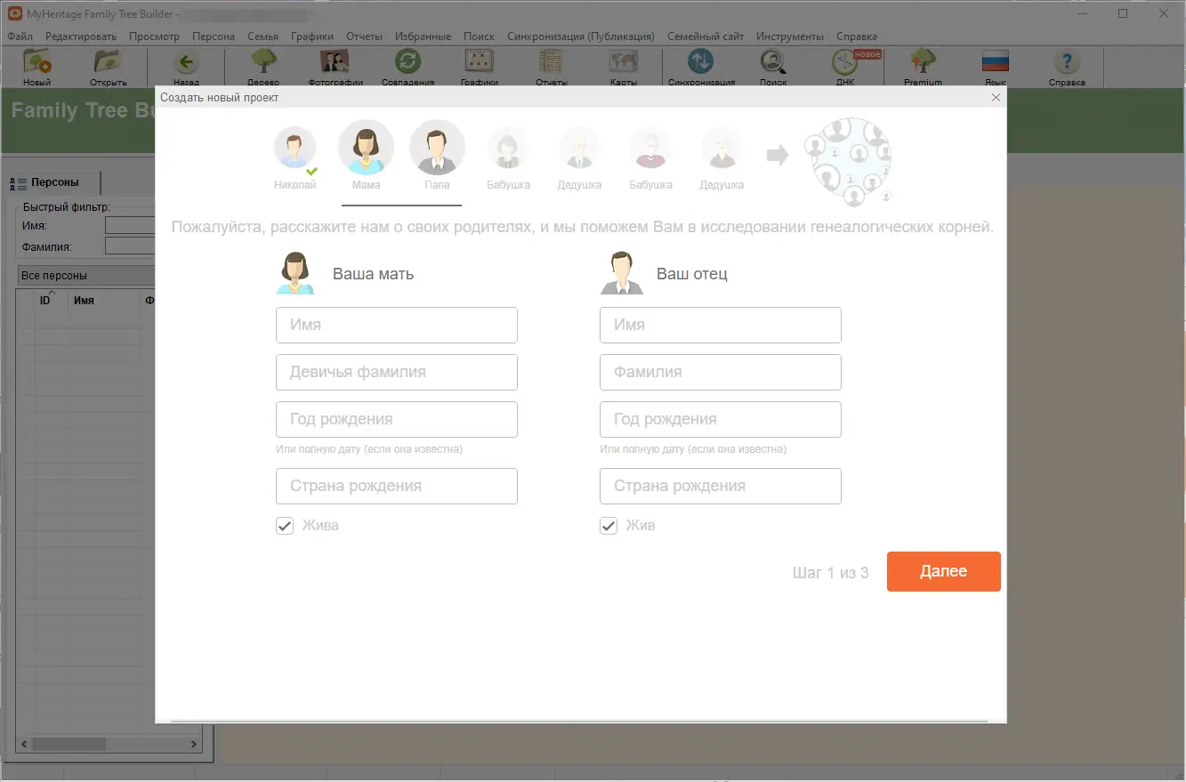 Family Tree Builder — это приложение, разработанное для тех, кто интересуется своей родословной и хочет визуализировать связи между поколениями. Программа позволяет собирать, хранить и анализировать данные о членах семьи, включая фото, документы, даты рождений и смерти, места проживания и другие биографические сведения. С её помощью можно строить наглядные схемы родства, генерировать отчёты и экспортировать информацию в различных форматах. Интеграция с глобальной базой данных обеспечивает доступ к историческим архивам и документам. Это делает процесс исследования прошлого семьи более полным и точным.