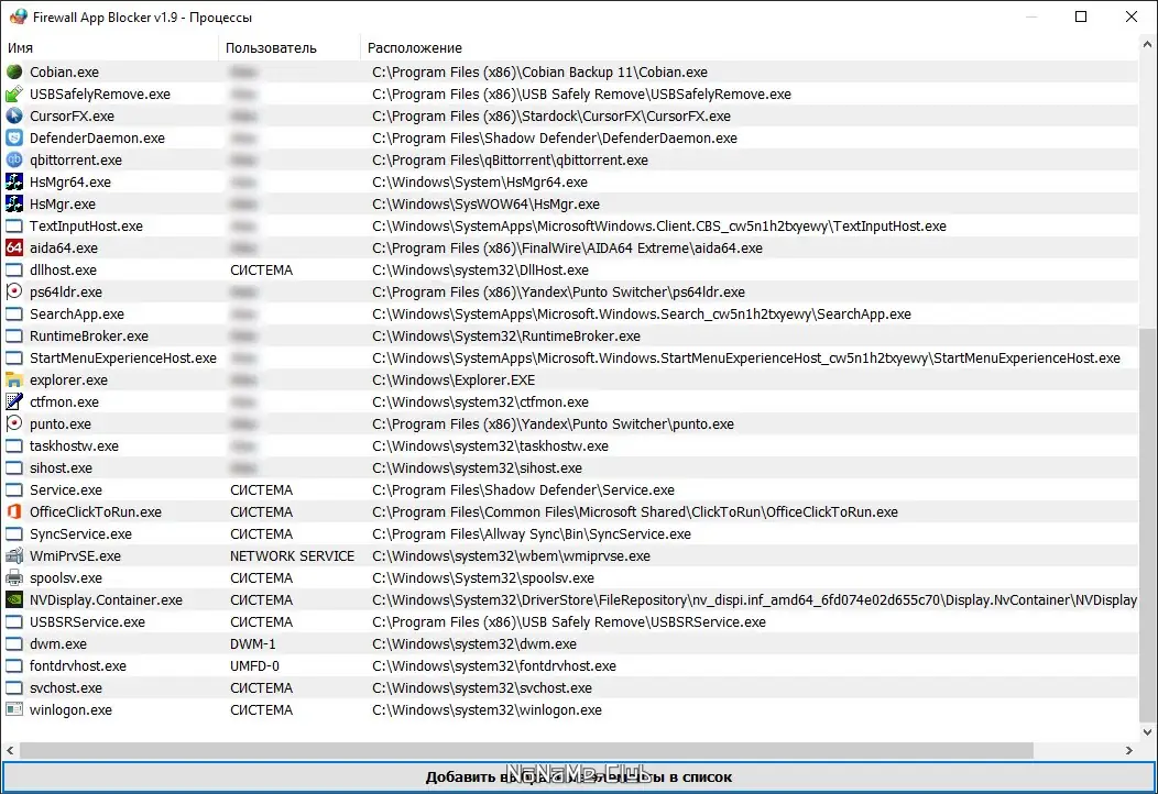 - Простое перетаскивание файлов для блокировки соединений