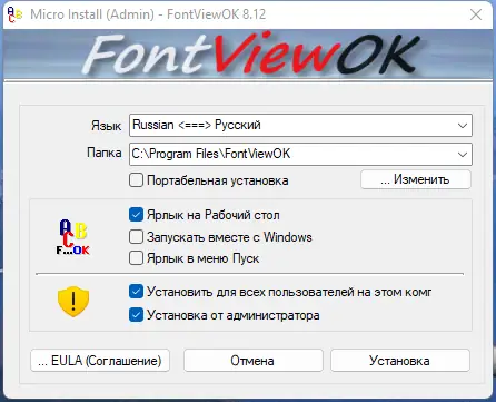 Программа доступна в нескольких версиях: установочной и портативной. Версии с пометкой _installer позволяют выбрать тип установки, включая создание портативного варианта, а файлы с суффиксом _p изначально работают в переносном режиме, сохраняя настройки рядом с исполняемым файлом. Обе версии идентичны по функционалу и различаются только способом размещения на устройстве. FontViewOK поддерживает русский язык интерфейса и совместима с актуальными версиями Windows.
