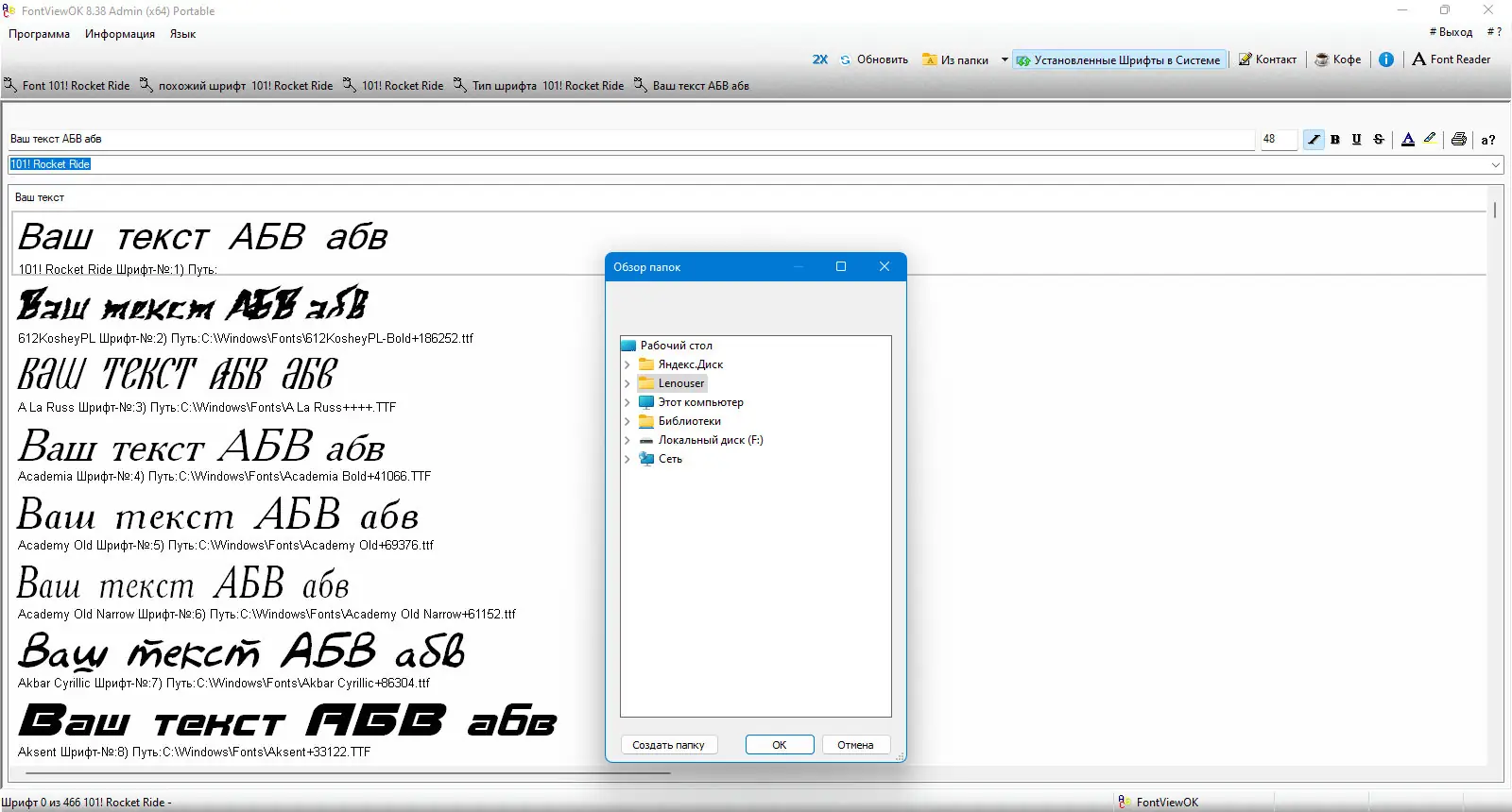 Работа с FontViewOK