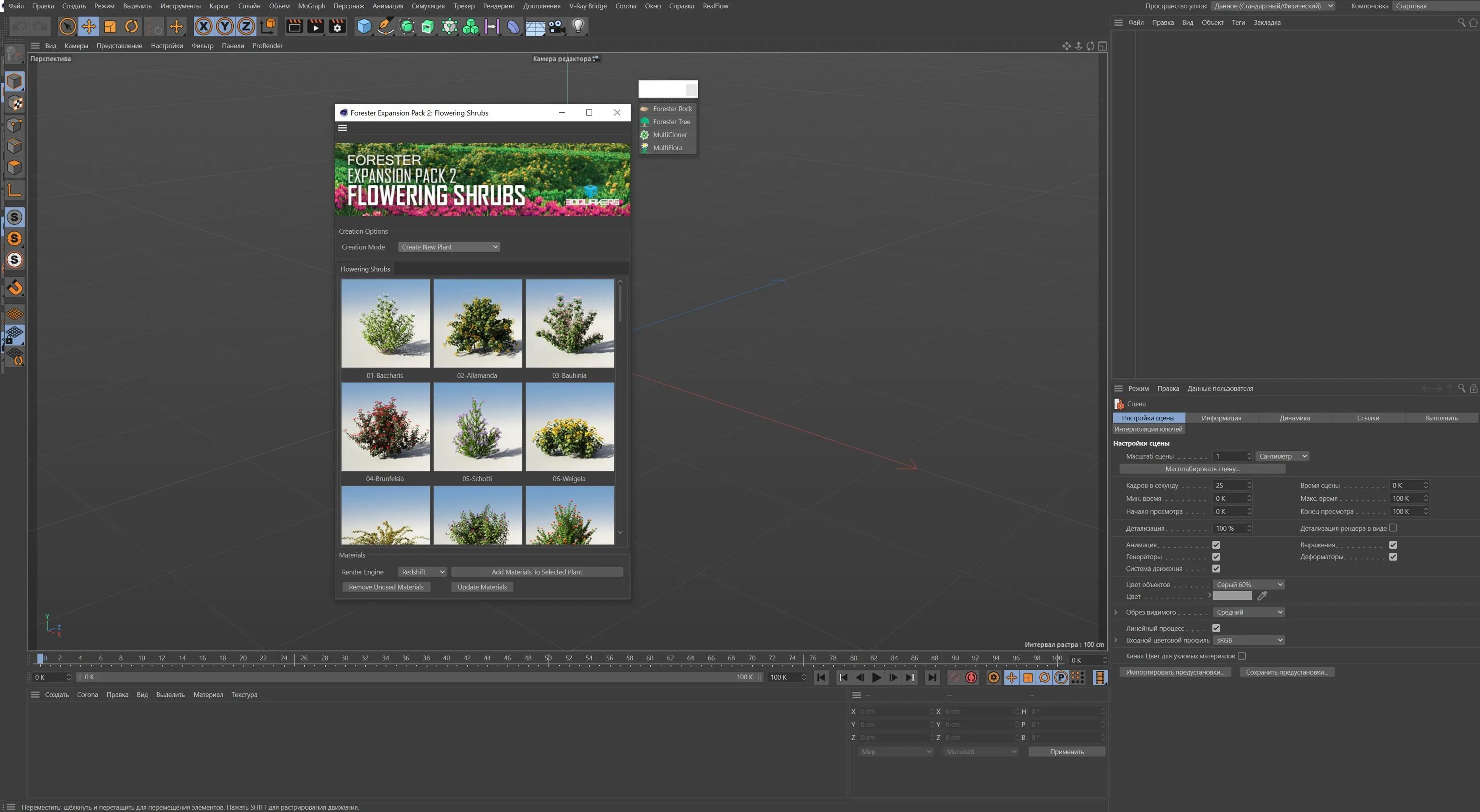 Интеграция Forester в рабочий процесс Cinema 4D позволяет экономить время при создании сложных природных композиций.