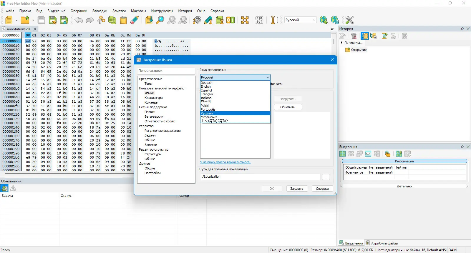 Free Hex Editor Neo предназначен для глубокого анализа и редактирования файлов в шестнадцатеричном формате. Он позволяет просматривать содержимое файлов на уровне байтов, что особенно полезно при отладке программ, восстановлении данных или работе с повреждёнными файлами. Интерфейс приложения многооконный, что обеспечивает удобство одновременной работы с несколькими файлами.