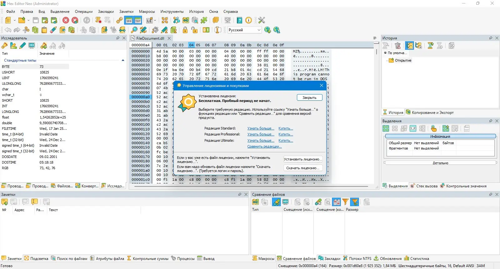 Free Hex Editor Neo доступен для бесплатного использования и может быть установлен на различных версиях Windows. Для добавления языковой поддержки, включая русский и украинский, предусмотрена возможность загрузки локализаций через настройки программы или вручную путём копирования папки Localization. Пользователи могут получить доступ к обновлениям и дополнительным компонентам в режиме онлайн. Программа активно развивается, а её функционал регулярно дополняется новыми возможностями.