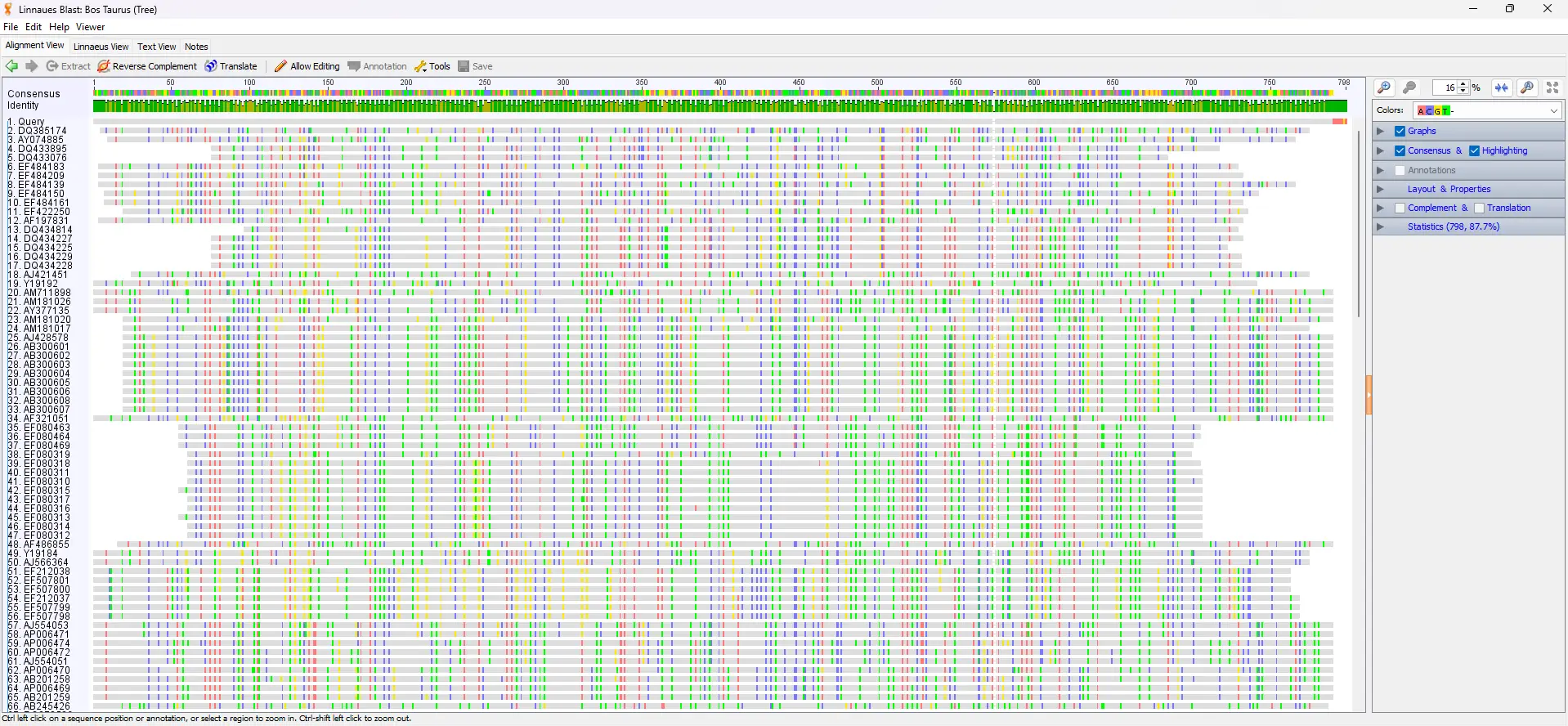 - Функция выравнивания последовательностей с использованием алгоритмов MUSCLE, MAFFT и ClustalW обеспечивает высокую точность результатов.