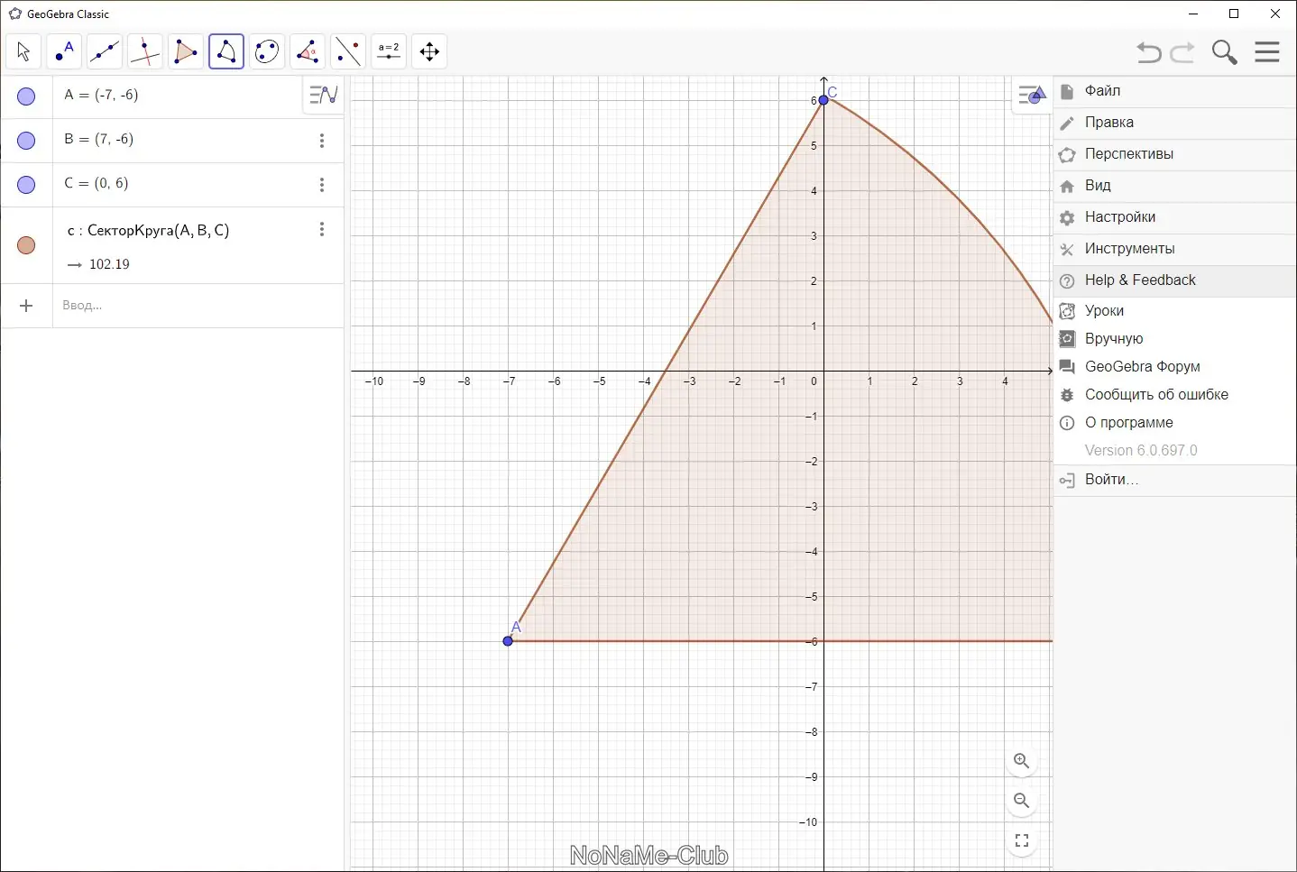 - Реализована работа с коническими сечениями: эллипс, парабола и гипербола строятся по фокусам и точкам, а окружность — по центру и радиусу или по трём точкам.