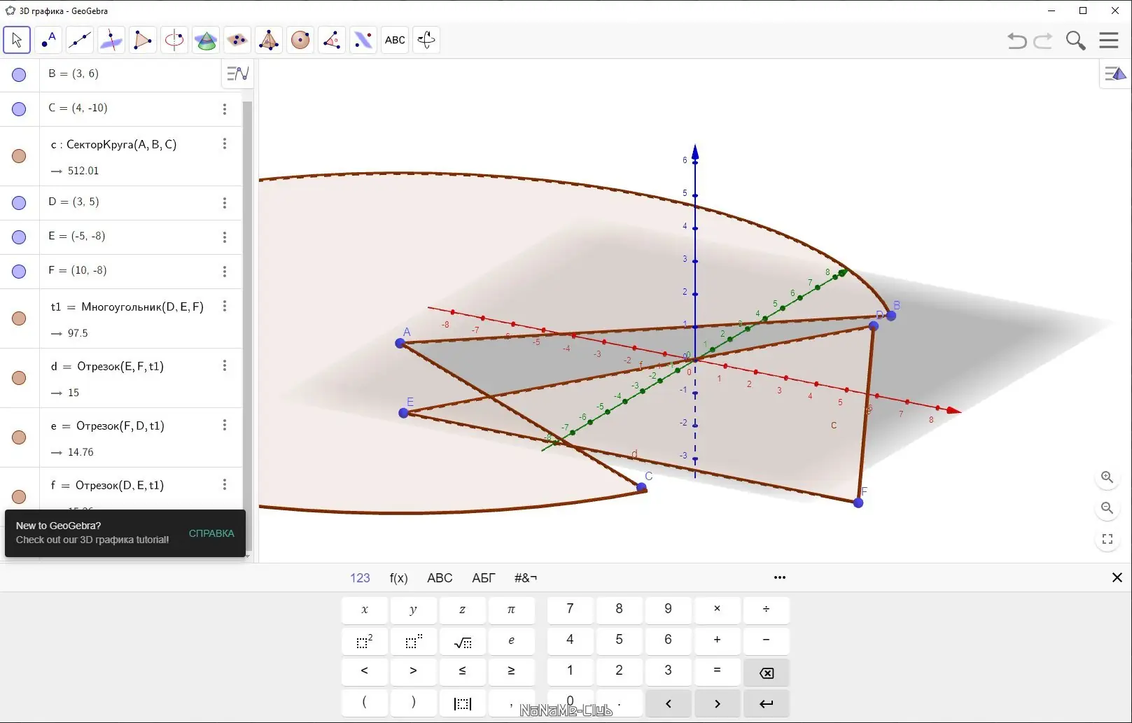 - Работа с 3d-объектами, включая построение пространственных фигур и анализ их взаимного расположения