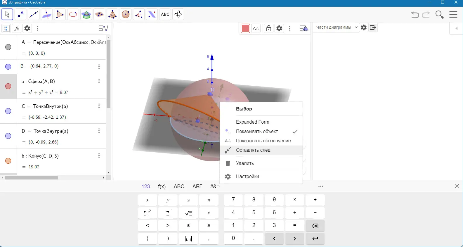 - Работа с 3D-объектами, включая построение пространственных фигур и визуализацию функций в трёхмерном пространстве.
