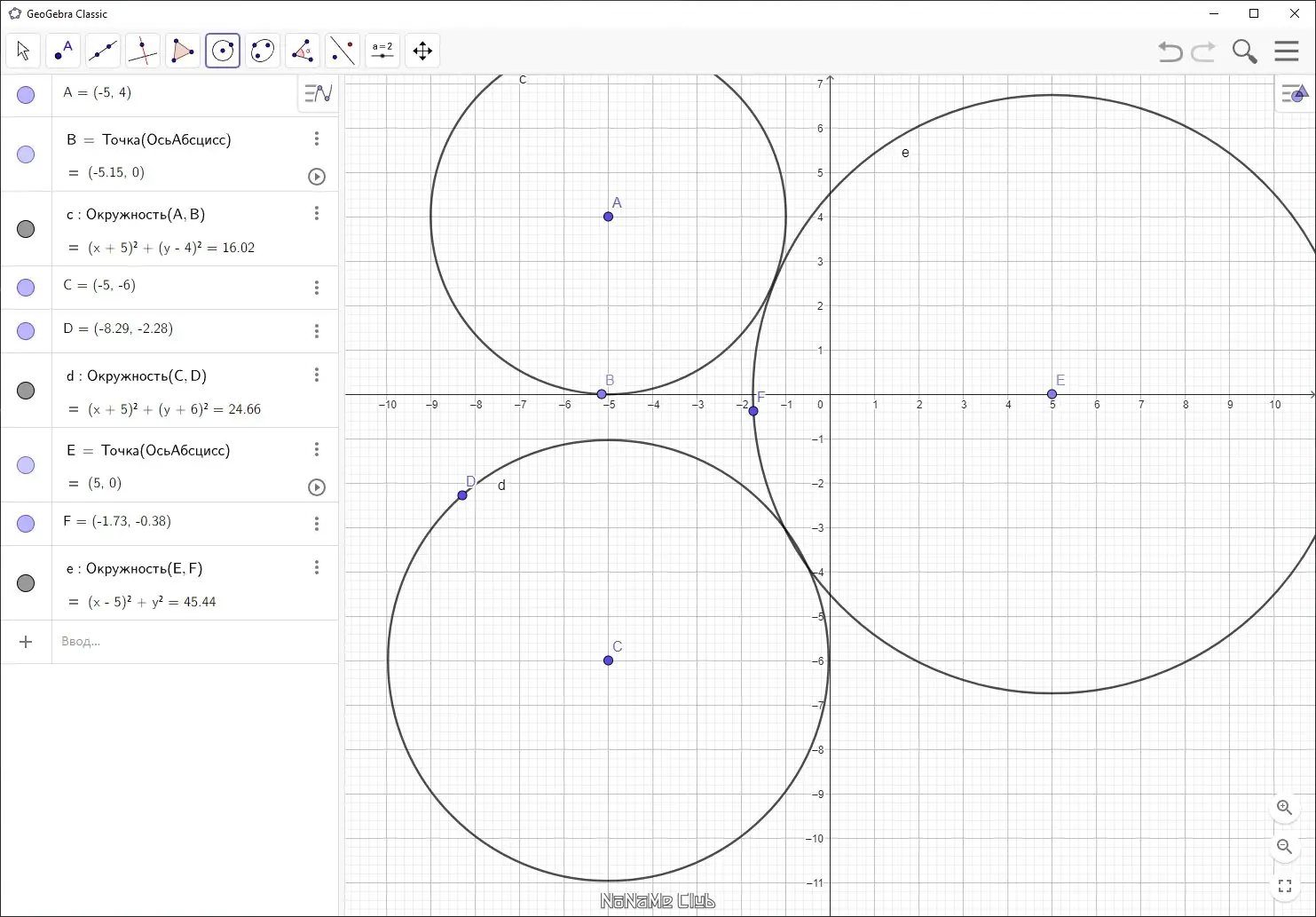 - Обеспечивает точное построение окружностей разными способами: по центру и радиусу, по трем точкам или по центру и точке на окружности.