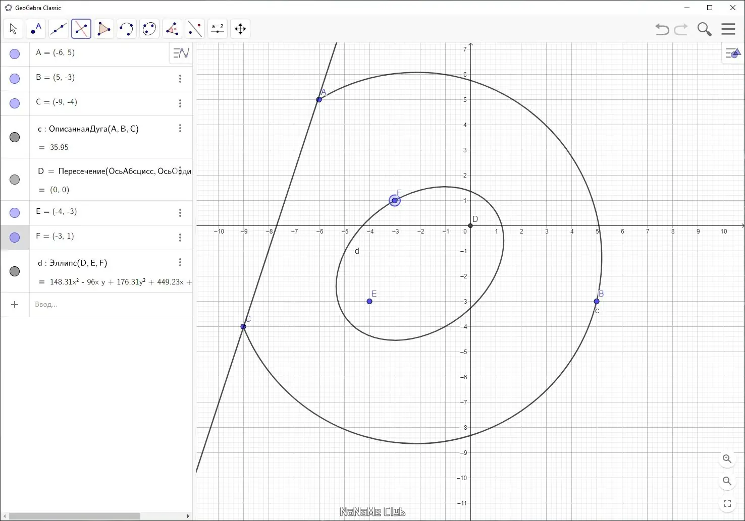 - Поддерживает создание конических сечений — окружностей, эллипсов, парабол и гипербол.