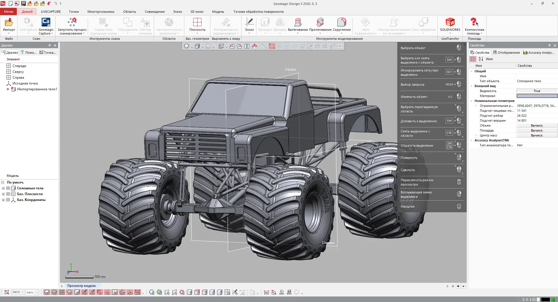 Geomagic Design X – это мощное программное обеспечение для 3D-реверсивного инжиниринга, сочетающее обработку сканированных данных с возможностями создания параметрических CAD-моделей. Программа обеспечивает точное преобразование физических объектов в цифровые твердотельные модели, поддерживая прямую интеграцию с ведущими системами САПР. Решение идеально подходит для инженеров, дизайнеров и производственных специалистов, работающих с 3D-сканированием и обратным проектированием.