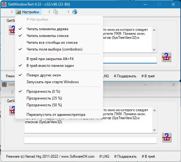 GetWindowText — компактное портативное приложение, предназначенное для извлечения текста из элементов интерфейса Windows, недоступных стандартным способам копирования. Утилита позволяет считывать содержимое окон, выпадающих списков, деревьев каталогов и других компонентов, где обычное выделение текста невозможно. Программа работает без установки и поддерживает широкий спектр версий операционной системы, включая последние обновления Windows 11.