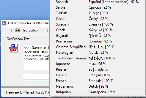 GetWindowText доступна для загрузки в портативной версии, что обеспечивает максимальную гибкость при использовании на разных компьютерах. Версия x32 совместима как с 32-битными, так и с 64-битными системами, включая Windows 7, 8.1, 10 и 11. В последнем обновлении, выпущенном 10 апреля 2023 года, были проведены тесты и корректировки для совместимости с новыми обновлениями Windows 11, а также обновлены языковые файлы. Добавлен новый язык интерфейса — каталанский, благодаря вкладу переводчика Доменека. Программа продолжает развиваться, сохраняя при этом свою простоту и эффективность. Обновление c версии 4.87 до 4.88 включает технические улучшения и расширение локализационной поддержки.