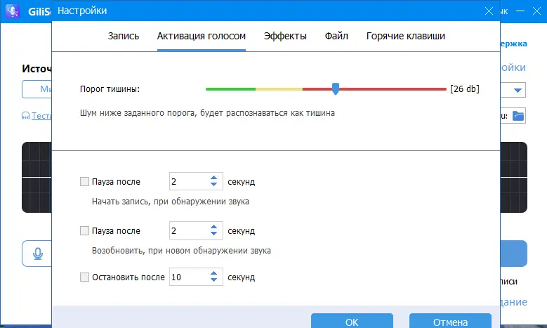 - Функция автоматической паузы при тишине — экономия места и удобство при длительных записях