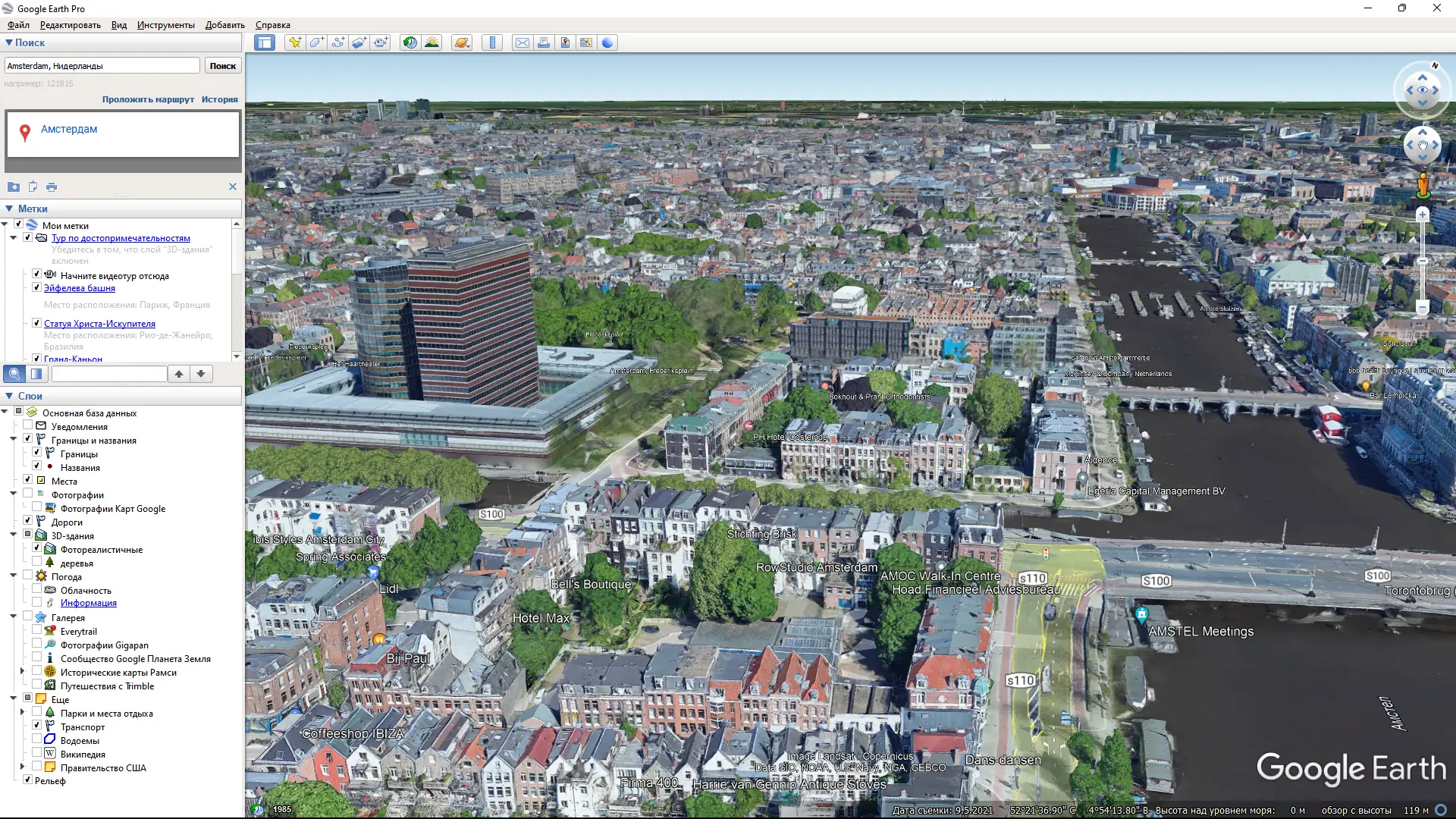 Google Earth — это мощное приложение для визуализации планеты в трёхмерном пространстве, сочетающее спутниковые снимки, картографические данные и интерактивные инструменты. Программа позволяет исследовать Землю от космоса до уровня улиц, изучать рельеф, здания и инфраструктуру в высоком разрешении. Благодаря поддержке технологий OpenGL и DirectX, пользователь получает плавное и реалистичное отображение поверхности.