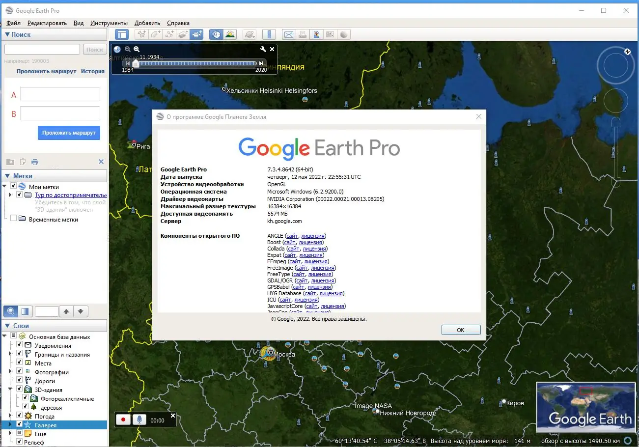 Google Earth представляет собой программный комплекс, разработанный для визуализации географических данных в интерактивной 3D-среде. Он базируется на технологии OpenGL и поддерживает работу с глобальной моделью Земли, позволяя пользователю перемещаться по любой точке планеты с высокой детализацией. Программа объединяет данные со спутников, аэросъёмки и наземных источников, формируя полную картину местности.
