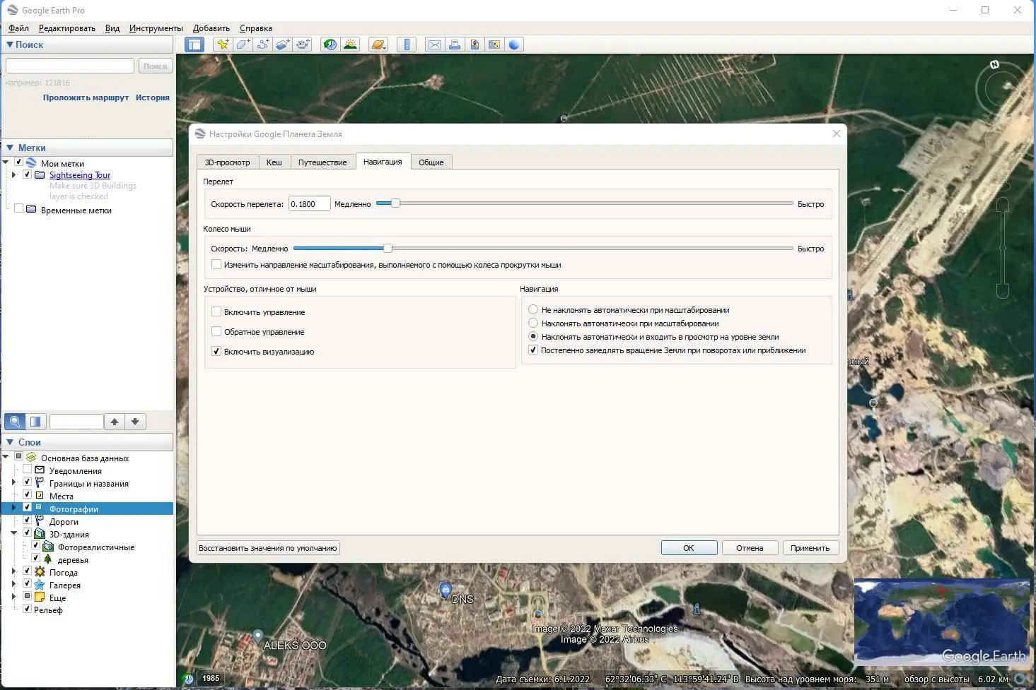- Высокое качество спутниковых снимков и поддержка 3D-рельефа в реальном времени.