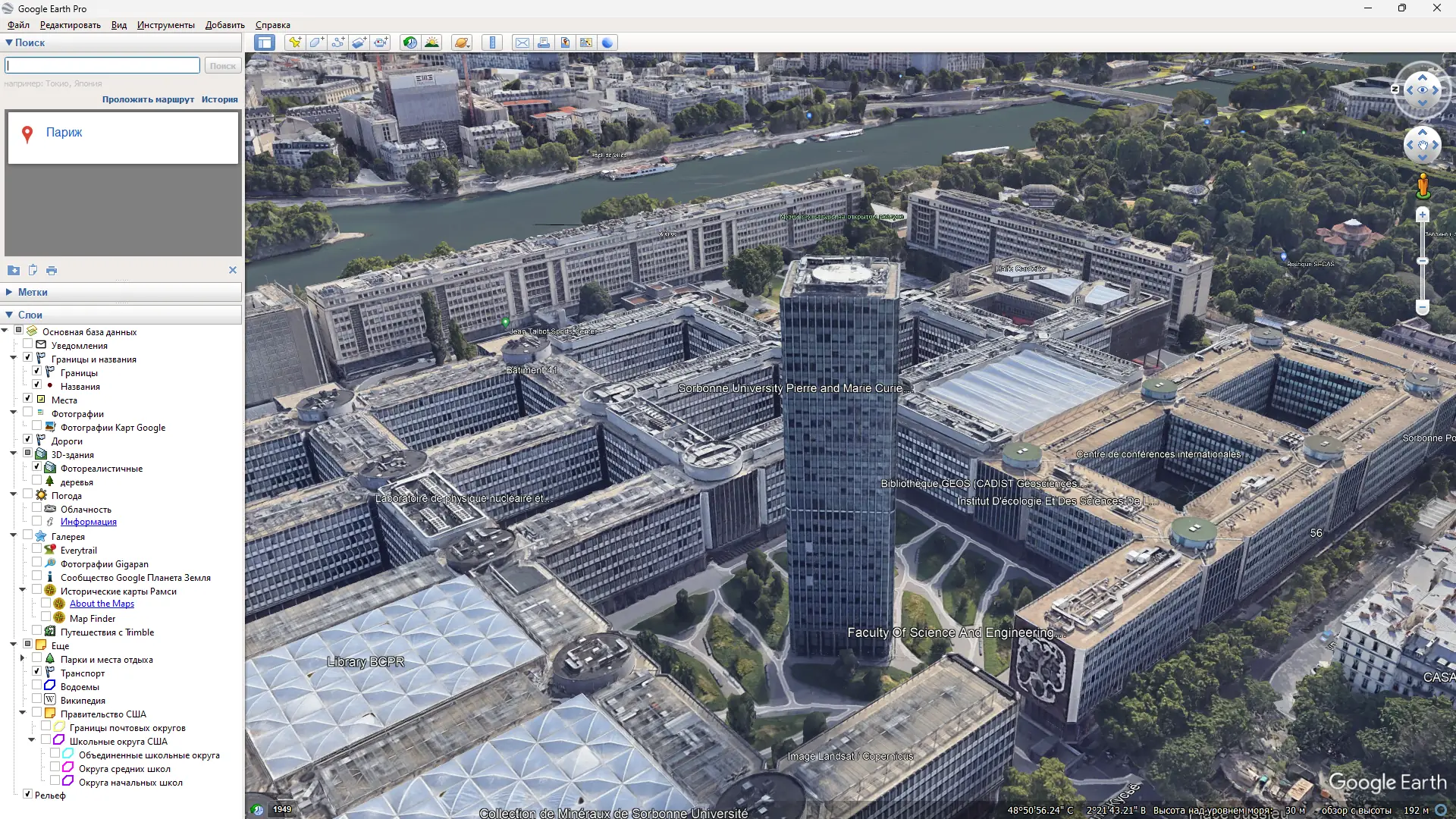 Программа Google Earth позволяет взаимодействовать с детализированной 3D-моделью Земли, построенной на основе данных, поставляемых из множества источников, включая спутники и аэросъёмку. Визуализация осуществляется с помощью современных графических интерфейсов, что обеспечивает плавное отображение рельефа, учёт высоты местности и реалистичную передачу поверхности планеты. Каждый пользователь может управлять виртуальной камерой, изменяя угол обзора, масштаб и направление движения по глобусу.