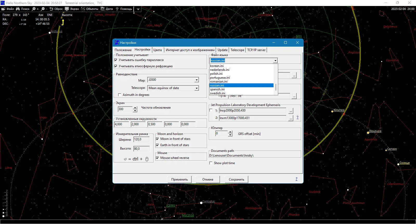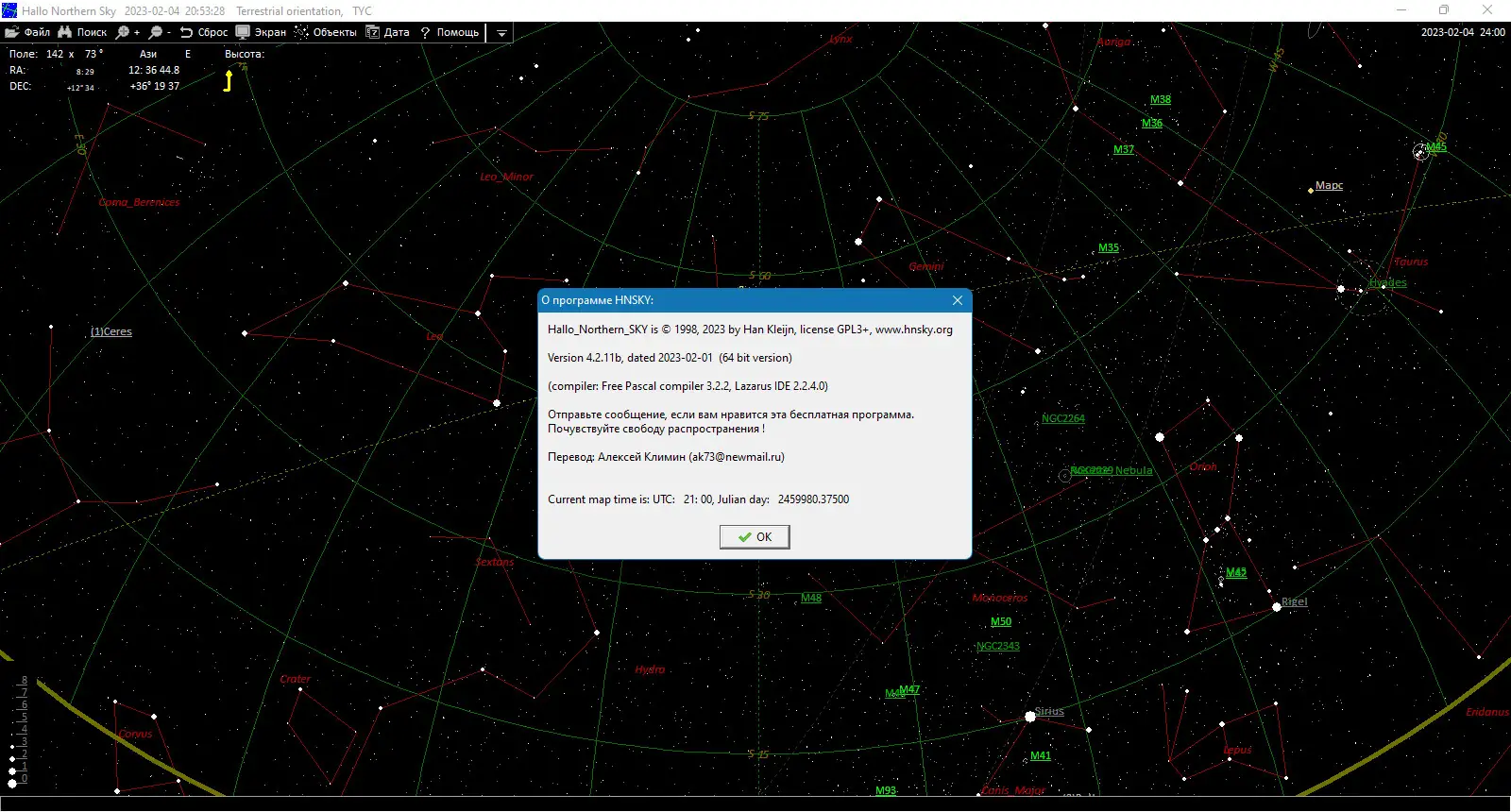Hallo Northern Sky — это мощный астрономический планетарий с открытым исходным кодом, разработанный для точного моделирования ночного неба. Программа позволяет визуализировать положение звёзд, планет, комет, астероидов и других небесных тел с высокой степенью детализации. Она поддерживает расширенные каталоги звёзд, включая данные, полученные с профессиональных телескопов, и даёт возможность исследовать небо в реальном времени или с изменением временной шкалы.