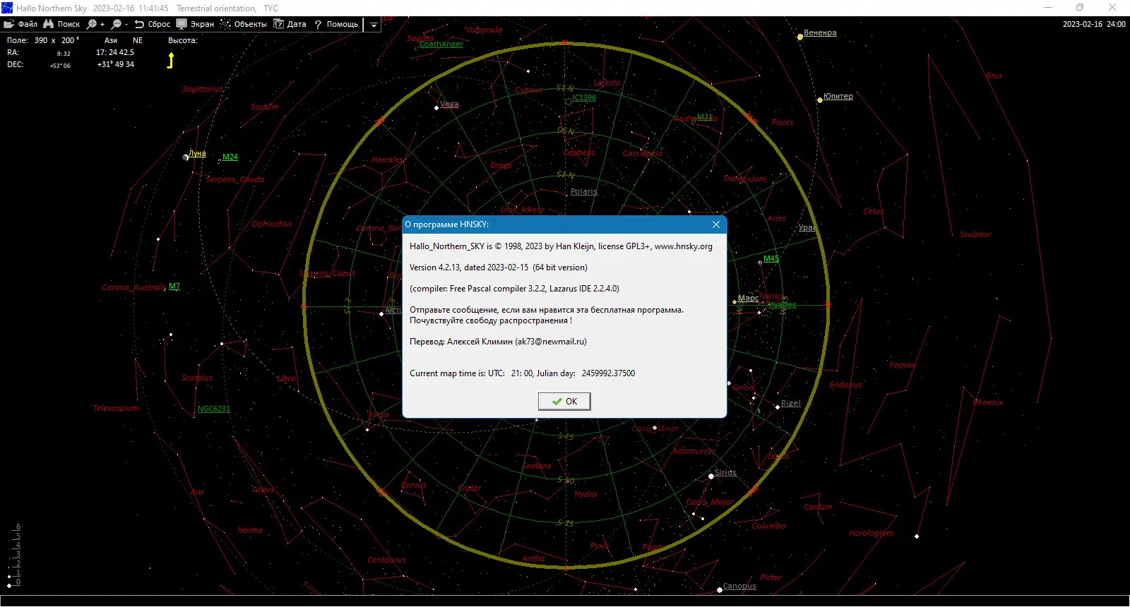 Hallo Northern Sky — это комплексное приложение, разработанное для визуализации звёздного неба с высокой точностью. Программа подходит как для образовательных целей, так и для практического использования при наблюдениях за ночным небом. Она поддерживает масштабирование от общего вида небесной сферы до детального рассмотрения отдельных объектов, таких как галактики, туманности и звёздные скопления.