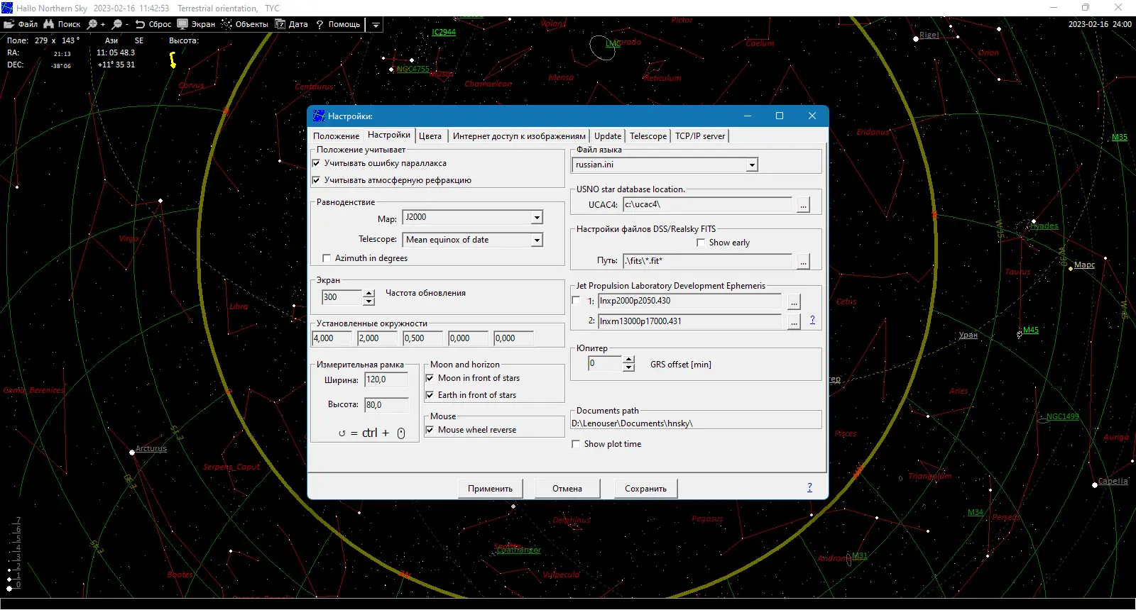 - Дополнительные каталоги, такие как USNO UCAC4 и GSC 1.2, позволяют расширить количество отображаемых звёзд до шестнадцатой величины, значительно повышая детализацию изображения.