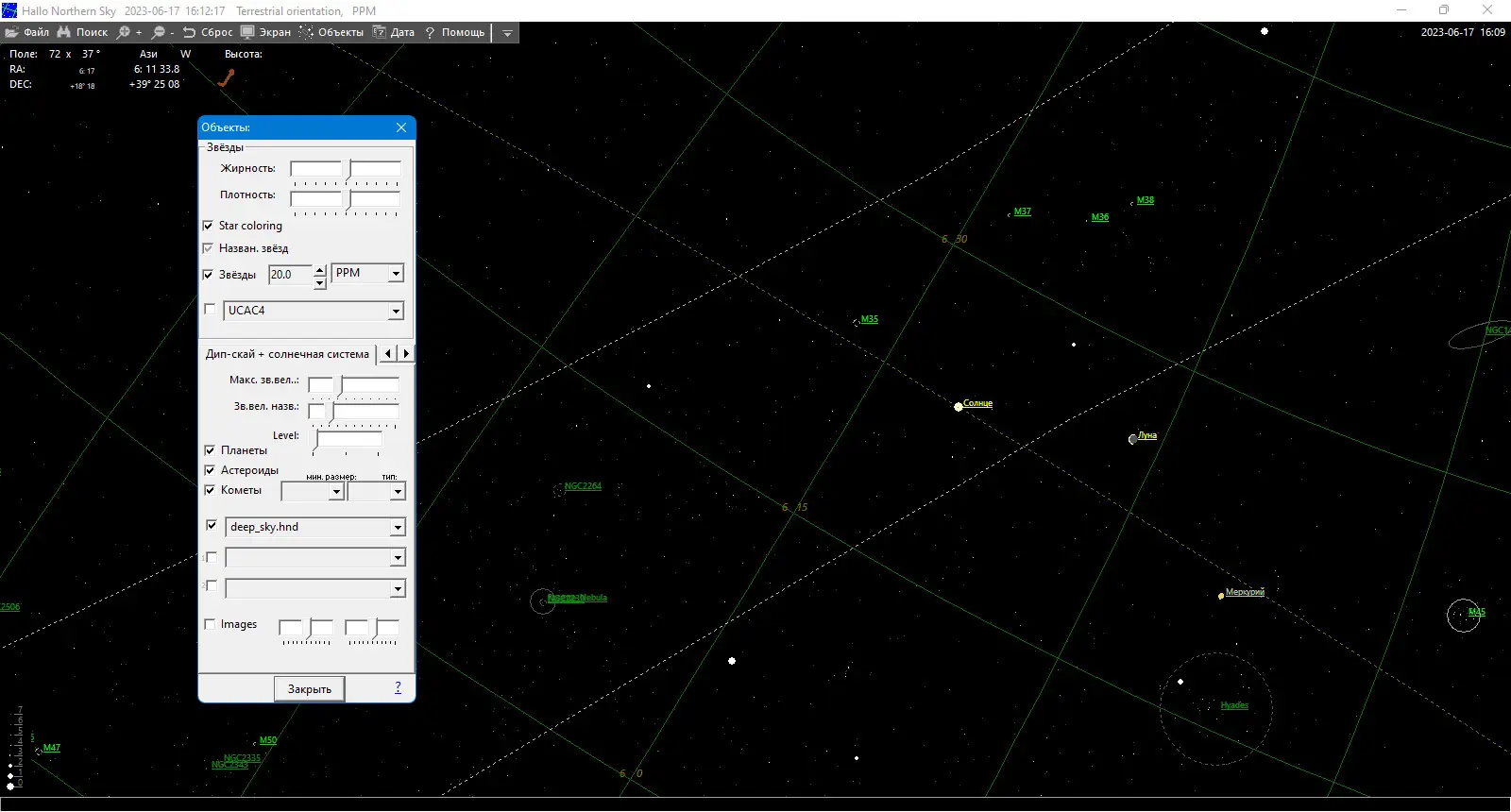 Hallo northern sky — это мощное программное обеспечение, предназначенное для визуализации звёздного неба и изучения астрономических объектов. Приложение объединяет в себе функции цифрового планетария, базы данных и инструмента для управления телескопом, обеспечивая глубокое погружение в мир астрономии.