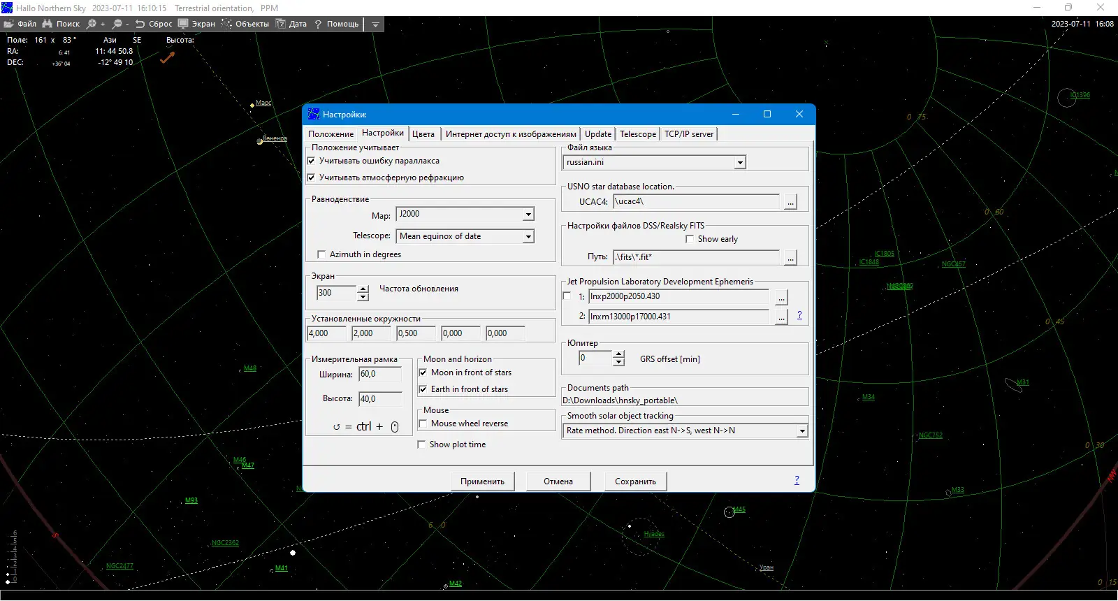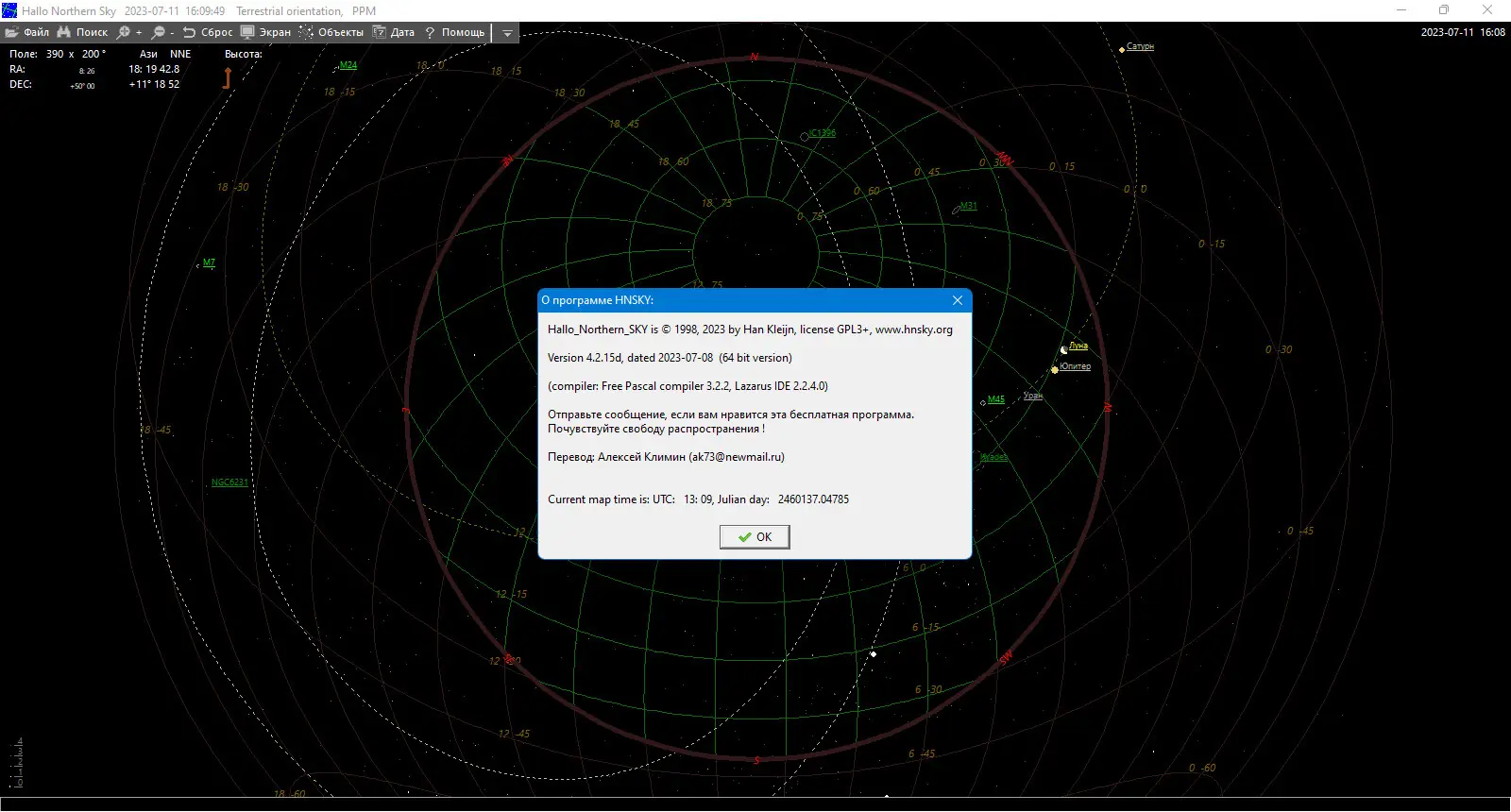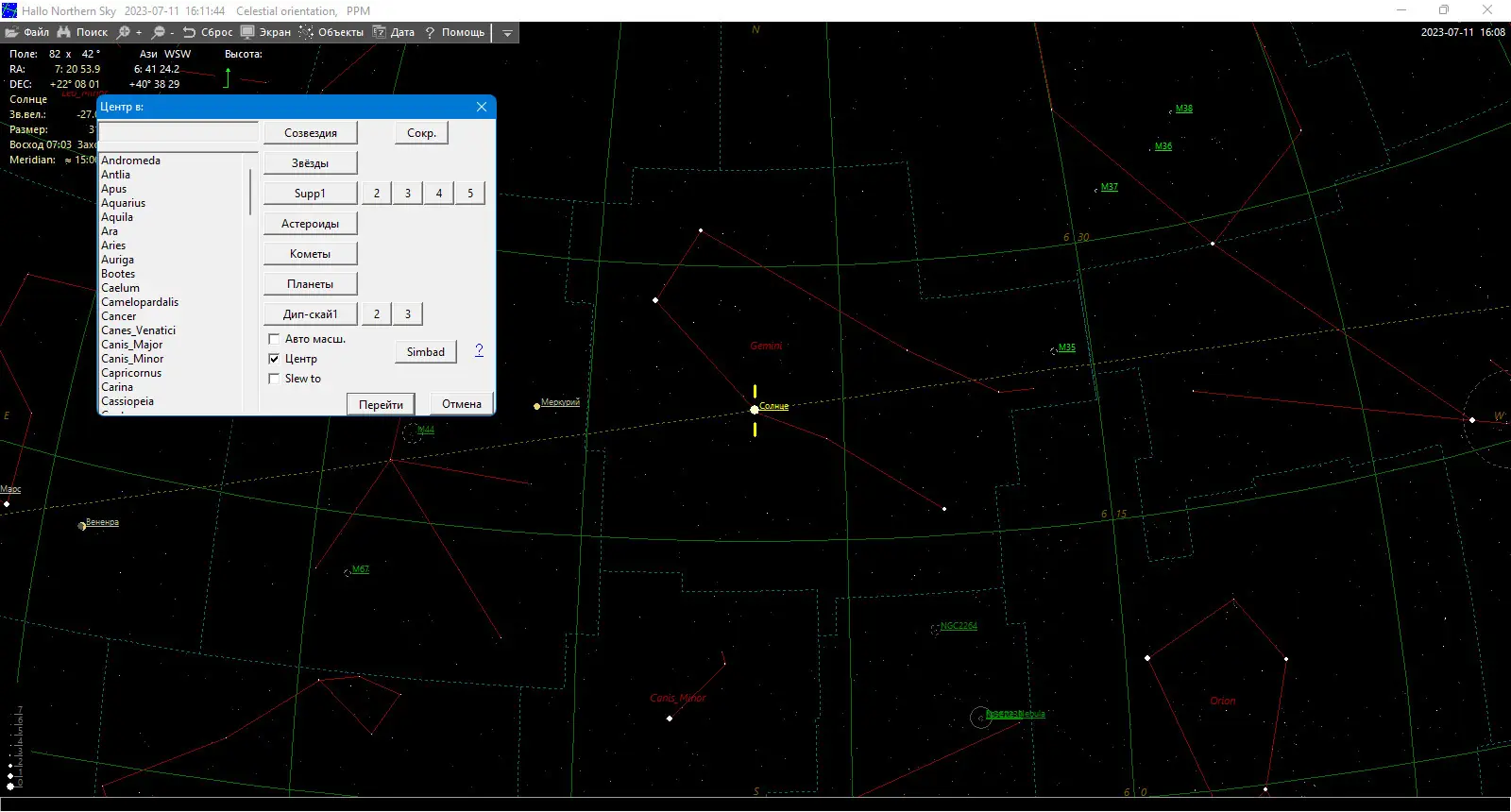 Hallo Northern Sky представляет собой бесплатное программное обеспечение, разработанное для моделирования звёздного неба с высокой точностью. Приложение позволяет визуализировать положение звёзд, планет, комет, астероидов и других объектов на любой момент времени — как в прошлом, так и в будущем. Оно активно используется для подготовки к наблюдениям, анализа астрономических явлений и обучения основам небесной механики.