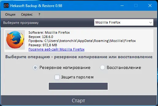 Работа с Hekasoft Backup & Restore