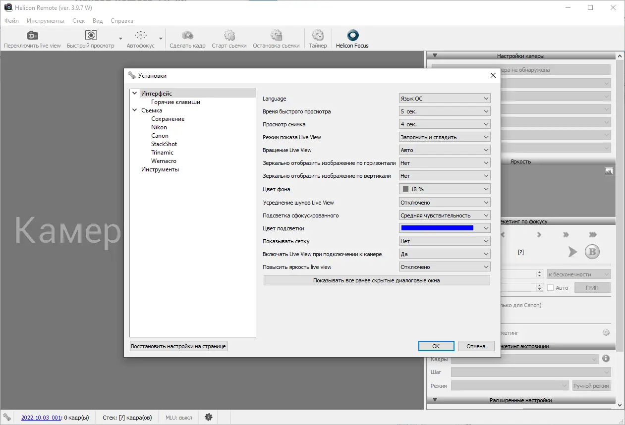 - Поддержка камер Canon и Nikon через USB и Wi-Fi