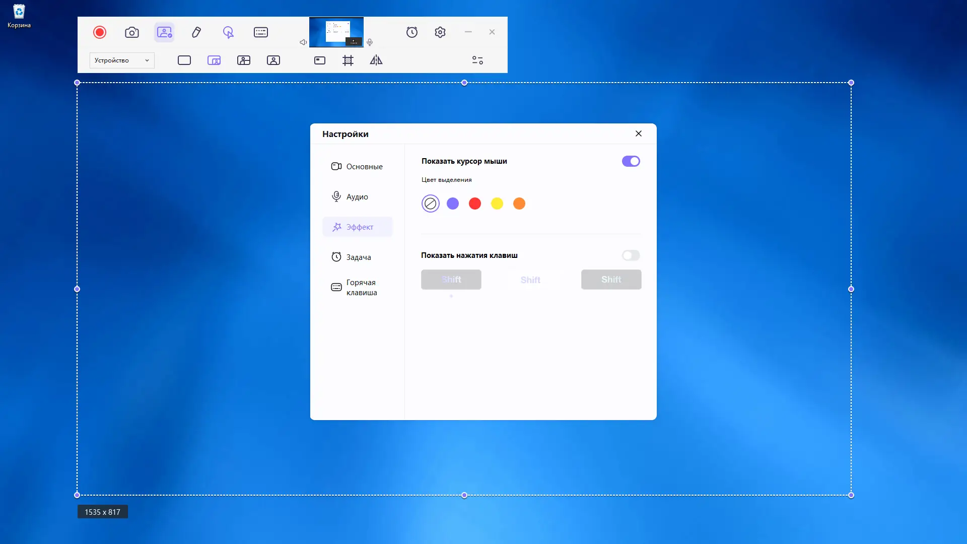 HitPaw Screen Recorder — это многофункциональный инструмент, предназначенный для качественной записи экрана в высоком разрешении. Программа поддерживает захват всего экрана, отдельного окна или пользовательской области, что делает её универсальной для различных задач. Пользователи могут одновременно записывать изображение с веб-камеры и звук с микрофона или системного аудио, создавая полноценные видео в формате «картинка в картинке». Поддержка популярных форматов, включая MP4, AVI, MOV и WMV, позволяет легко делиться результатами или использовать их в дальнейшем монтаже.